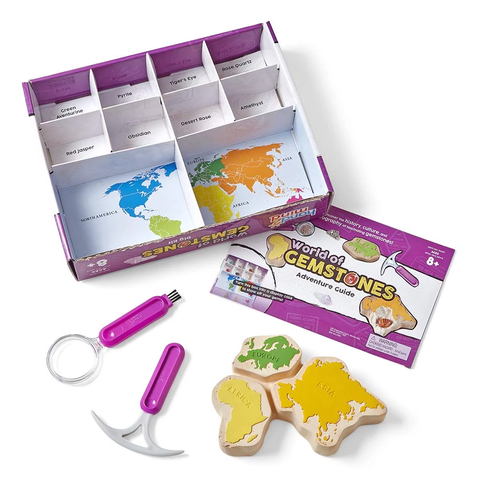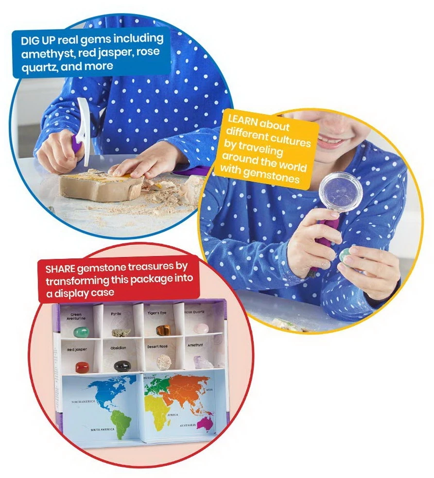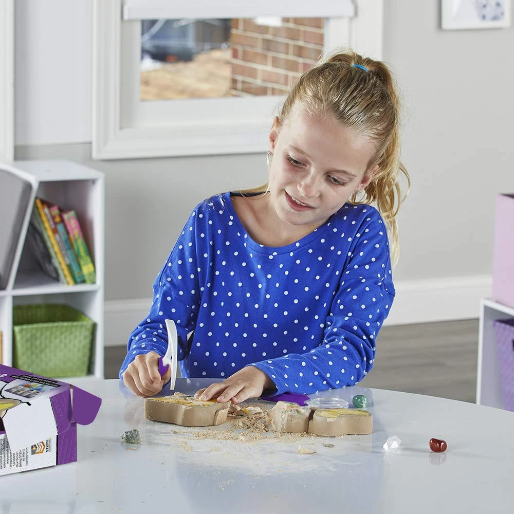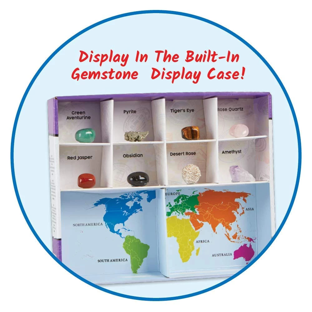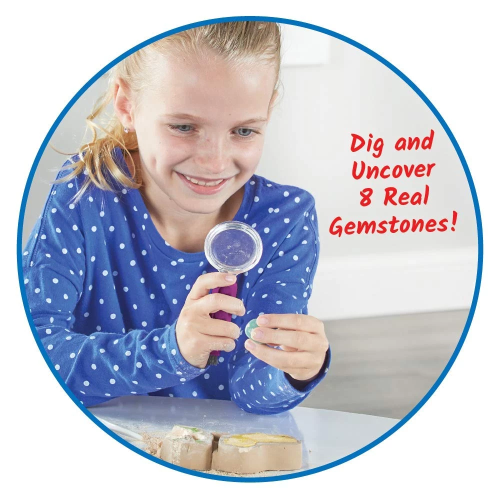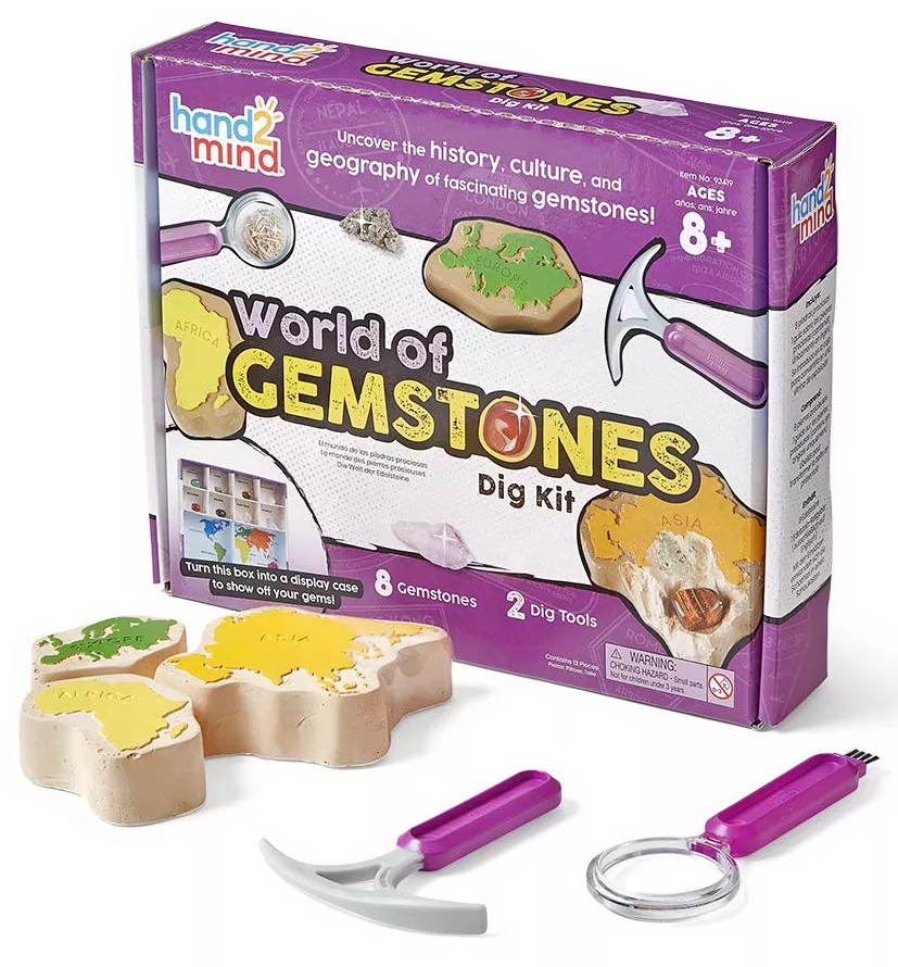 hand2mind World of Gemstones Dig Kit, 8 Real Gemstones to Uncover, Gemstone Display Case, Gem Digging Kit for Kids