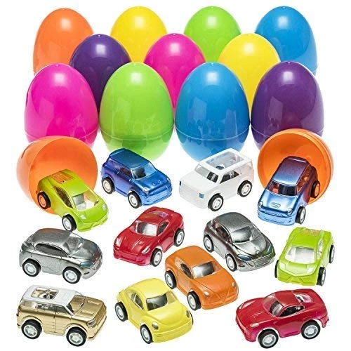 Prextex Easter Eggs Filled with Mini Pull Back Vehicles