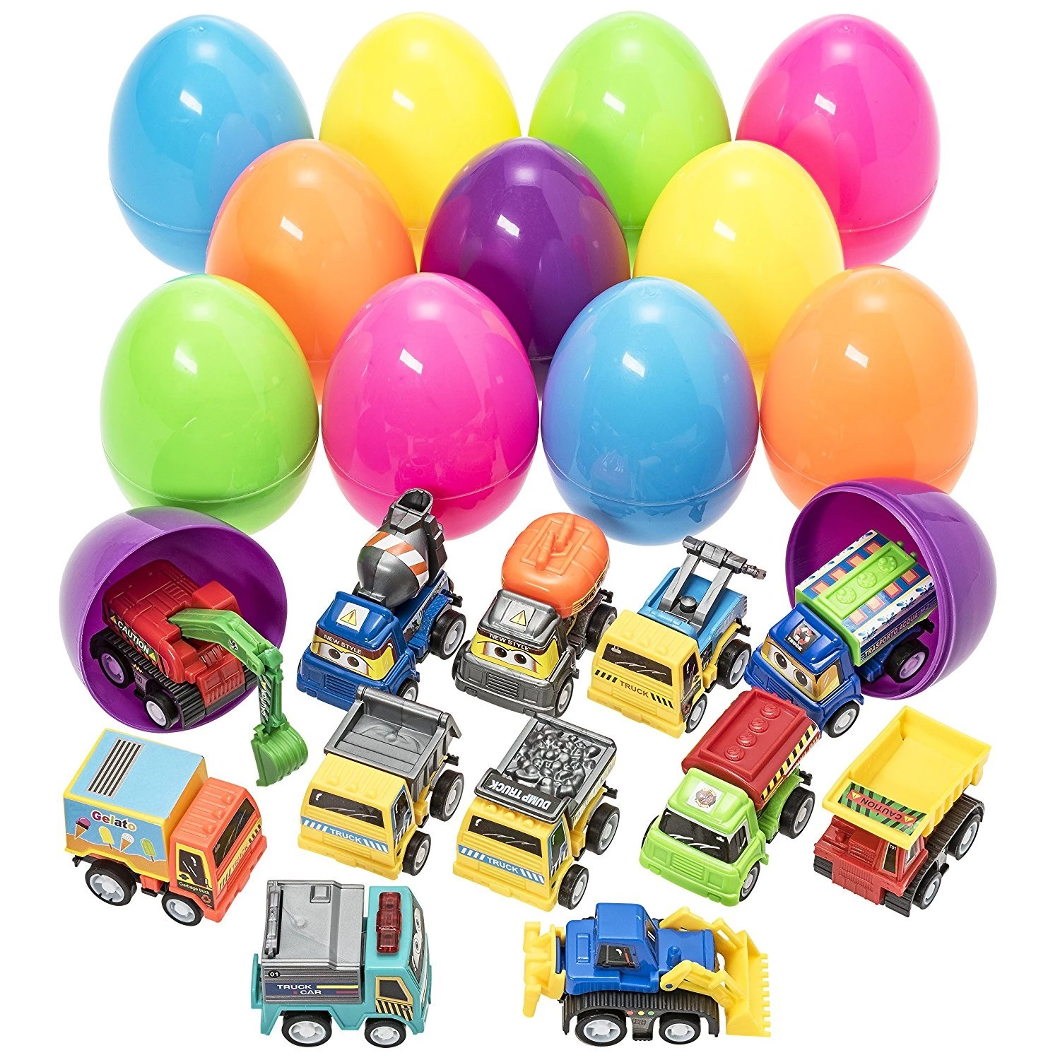Prextex Toy Filled Easter Eggs Filled with Pull-Back Construction Vehicles