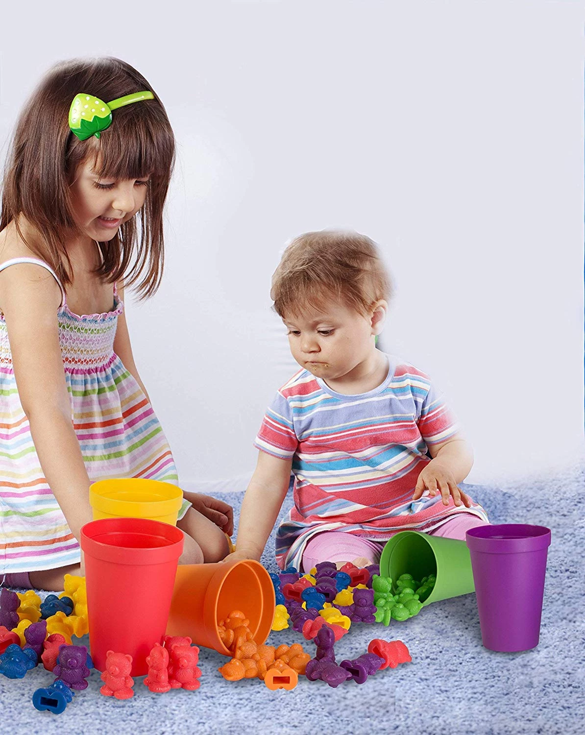 З цим набором можна вчити кольори, рахунок, сортування, угруповання і т. д. Діти люблять підраховувати, сортувати, зіставляти і грати з цими чудовими ведмедями. Яскраві кольори веселки роблять цей набір дуже захоплюючим і цікавим.