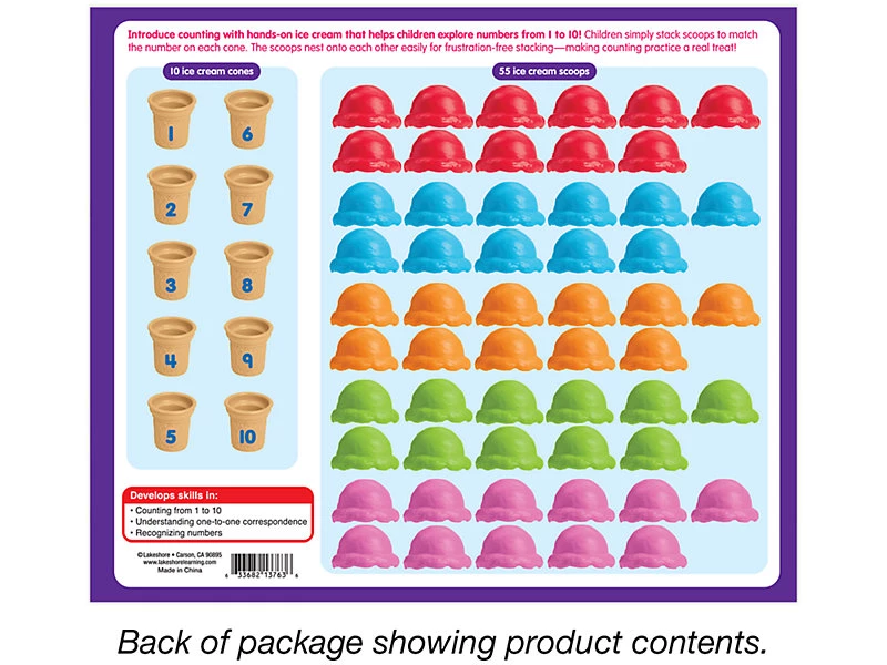 После покупки игрушки мой 3-х летний сын научился считать и сортировать шарики мороженного. Хороший товар для изучения чисел, сделан хорошо.
