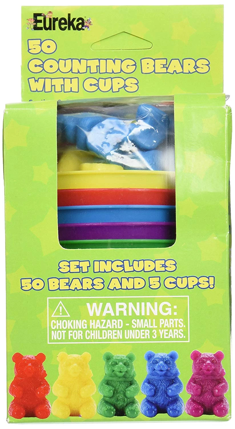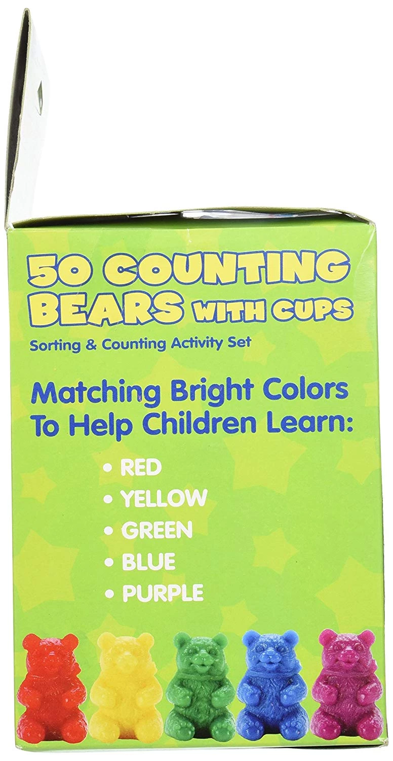 У наборі 50 пластикових ведмедів (по 10шт різного кольору), плюс п'ять стаканчиків в кольорах, які відповідають ведмедям для сортування.