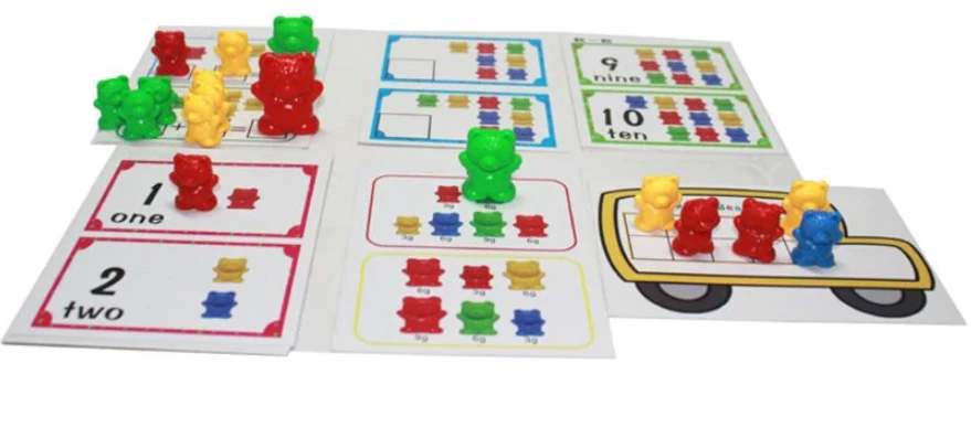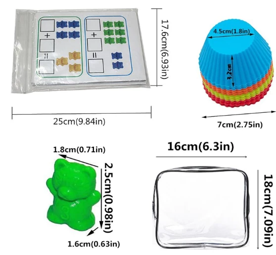 Сортування ведмедів по кошиках забезпечує візуальне сприйняття (ведмедики в двох розмірах), ідеально підходить для вивчення кольорів, розвиває моторику, допомагає дітям побачити, що однаково і в чому відмінність. Використовувати для вивчення рахунку (додавання, віднімання, десятки).