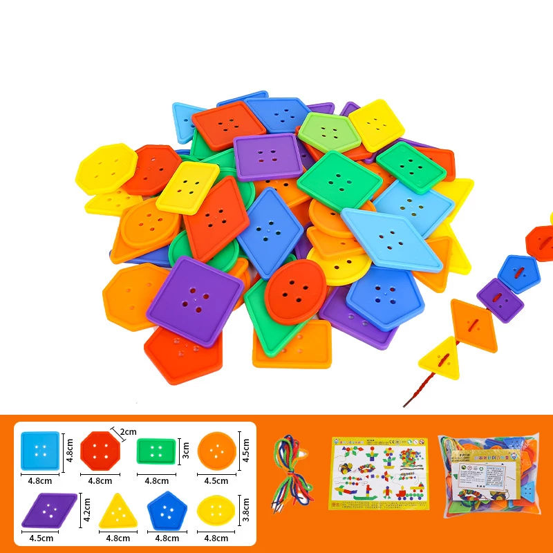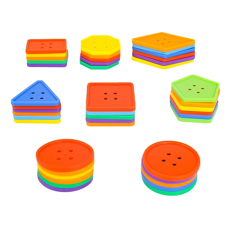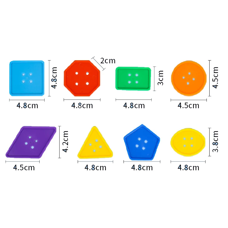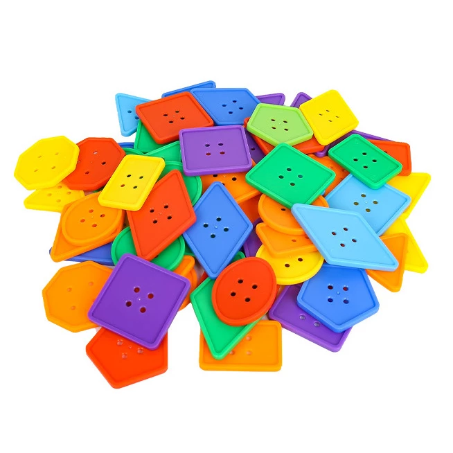 Гудзики мають 6 кольорів, 8 форм. Цей універсальний набір також відмінно підходить для вивчення кольорів, для розвитку спритності рук. Упаковка пакет.