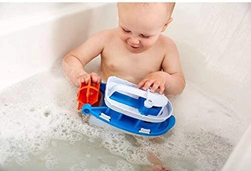 Green Toys Paddle Boat, Blue / Grey - Pretend Play, Motor Skills, Kids Bath Toy Floating Pouring Vehicle. No BPA, phthalates, PVC.