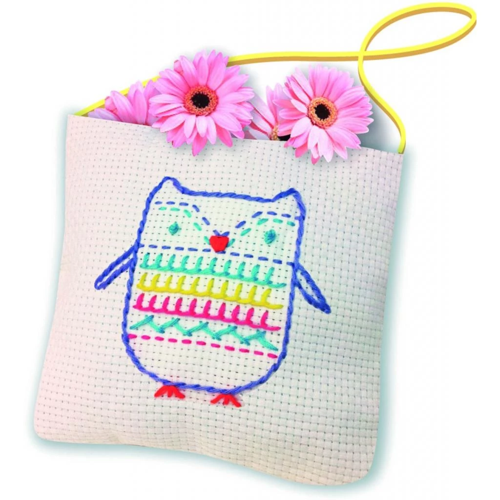 Прекрасний набір для творчості, який навчить вишивати різними видами швів (10 видів) і створювати речі ручної роботи. З цим набором ви зможете власноруч пошити милу подушку і красиву сумку. Слідуючи інструкції, ви зможете красиво і акуратно вишити різнокольорову сову і метелика. У комплекті є все, що потрібно для цього захоплюючого заняття, плюс докладна інструкція. Прекрасно розвиває у багатьох напрямках і вчить акуратному шиттю і творчості.