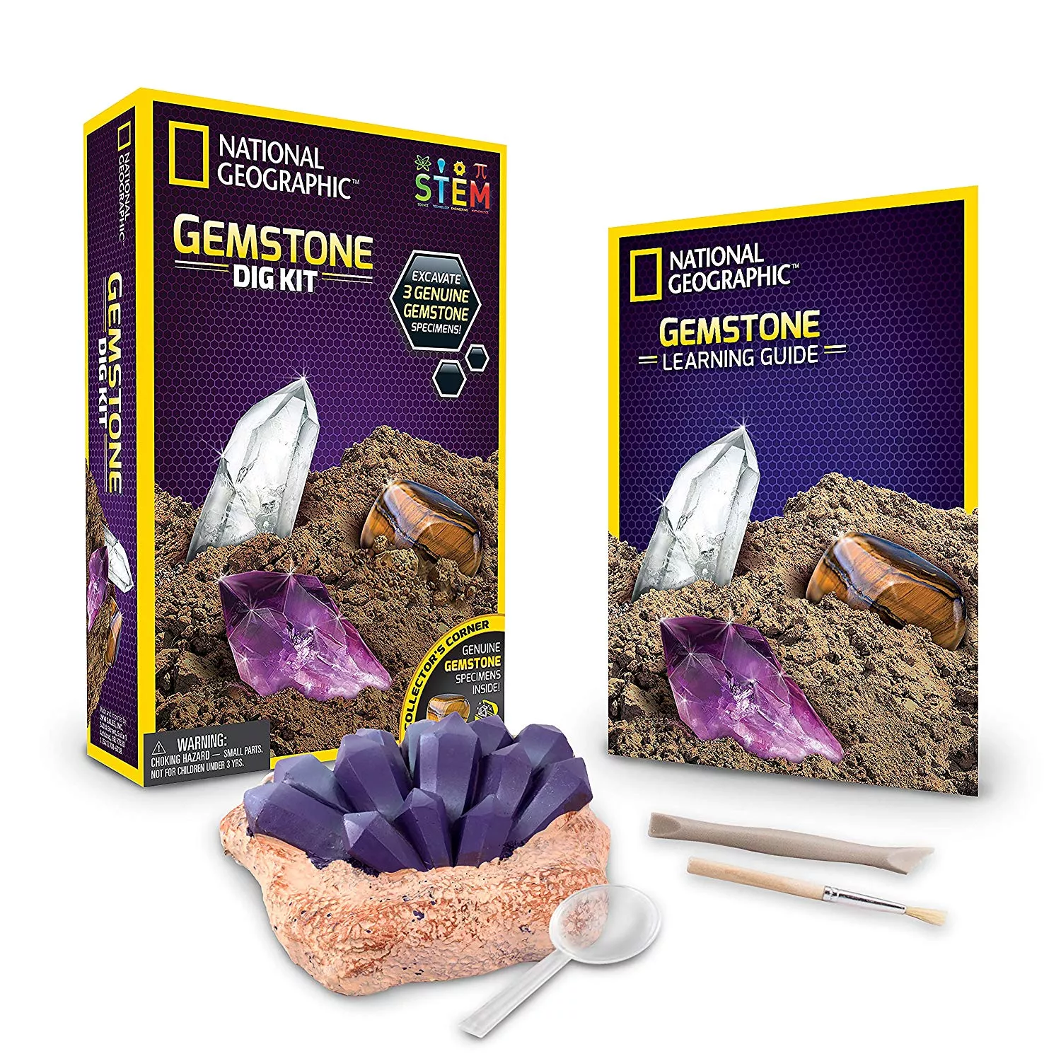 Відкопайте справжні дорогоцінні камені і почніть збирати дивовижну колекцію каменів! Це захоплюючий набір, який сподобається всім дітям! Дитина стане справжнім шукачем скарбів. Повнокольорове керівництво National Geographic дозволяє легко ідентифікувати кожен знайдений зразок. Керівництво також містить безліч інформації і дивовижних фактів про кристали.
