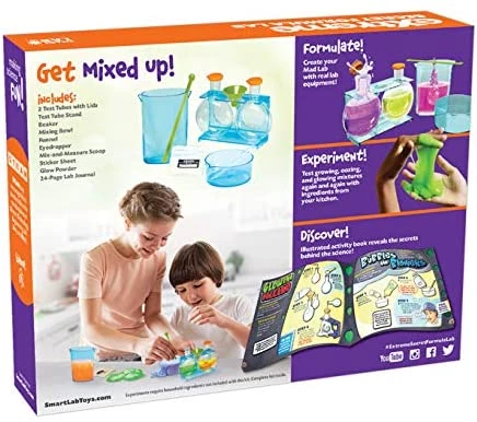 Спробуйте свої сили в науці з Extreme Secret Formula Lab! Цей набір для хімічних експериментів для дітей включає в себе склянку, воронку, мірну ложку, бульбашкові пробірки з м'якими кришками для проведення 20 експериментів, які світяться, сочатся і покриваються слизом.
