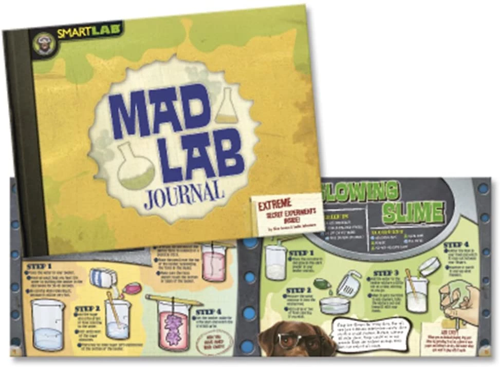 Хімія ще ніколи не була такою класною! Зробіть свої власні наклейки з подряпинами і запахом і налякати своїх друзів нопланетної кров'ю. Божевільний журнал лабораторних досліджень, включений в цей набір, включає 20 різних експериментів з хімії, які зроблять навчання цікавим і задовольнять юних божевільних вчених.