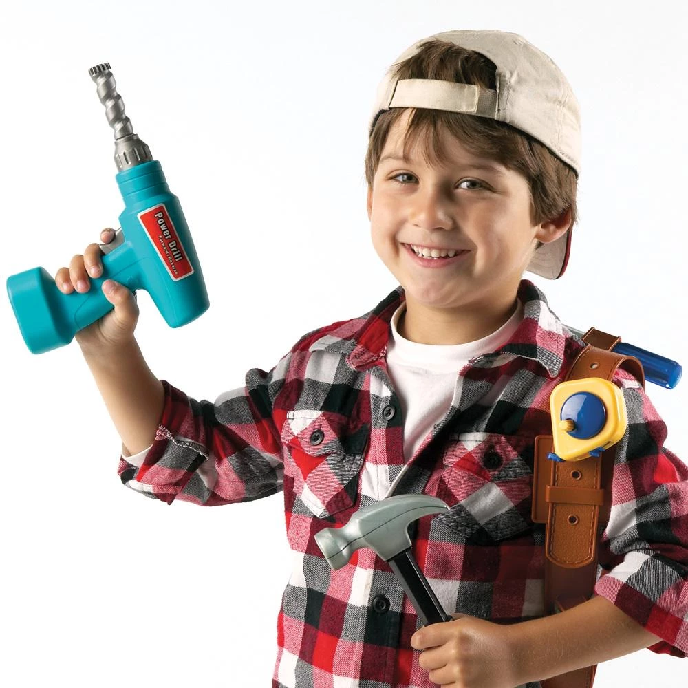 Вибір правильного інструменту для роботи важливий. Потрібен молоток, щоб забити цвях? Відкрутити гвинтик і потрібна заміна? Захоплюючий набір для маленького помічника. Набір зберігатися в зручній і місткій валізі, яку зручно носити з собою. Дрель на батарейках, гайки, болти, молоток, пила, рулетка і дошка підкорять вашого малюка і привернуть в гру, нібито він справжній дорослий будівельник. Всі інструменти і пояс зроблені з міцного пластику і весь набір в цілому виконаний реалістично, щоб іграшкові інструменти були як справжні.