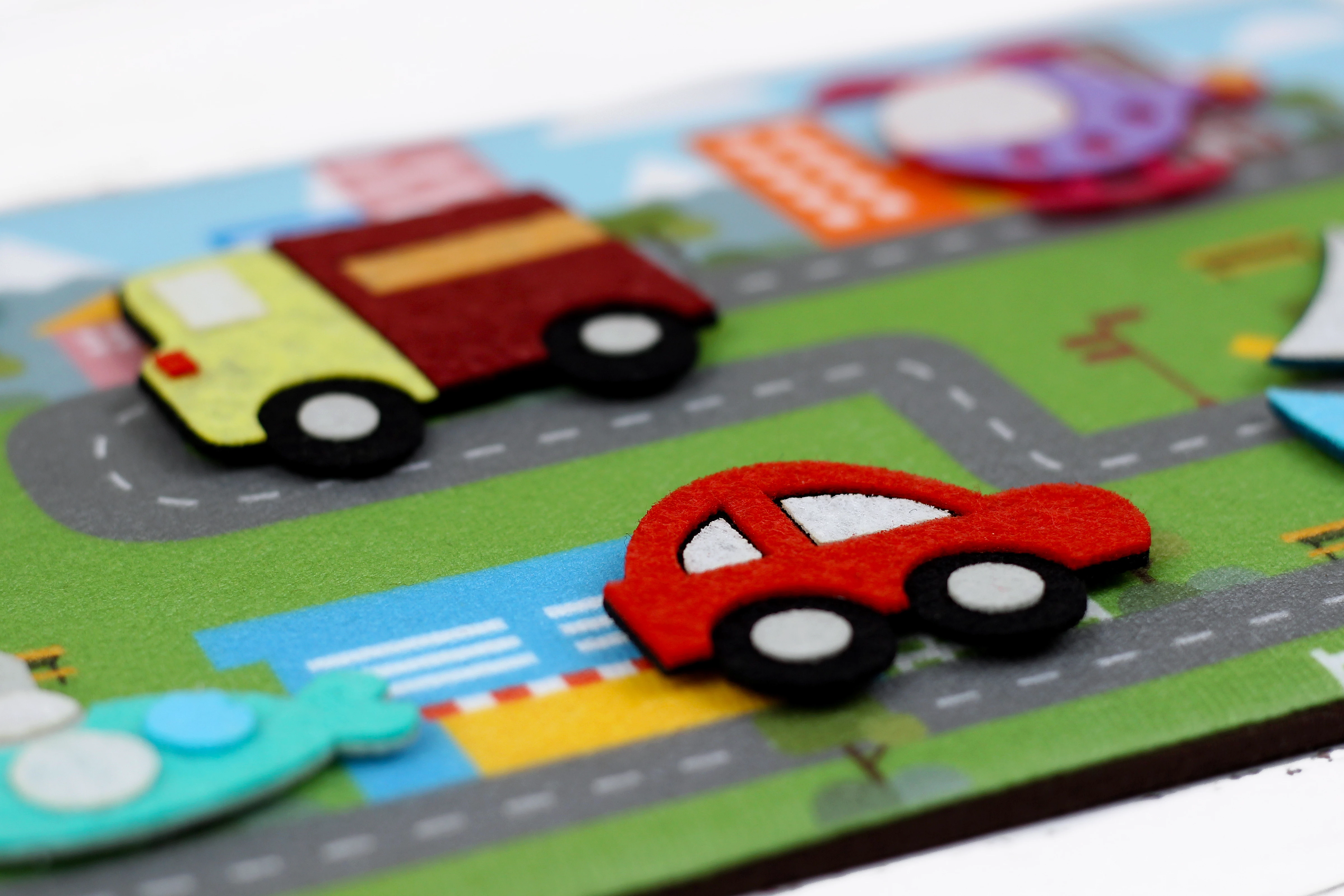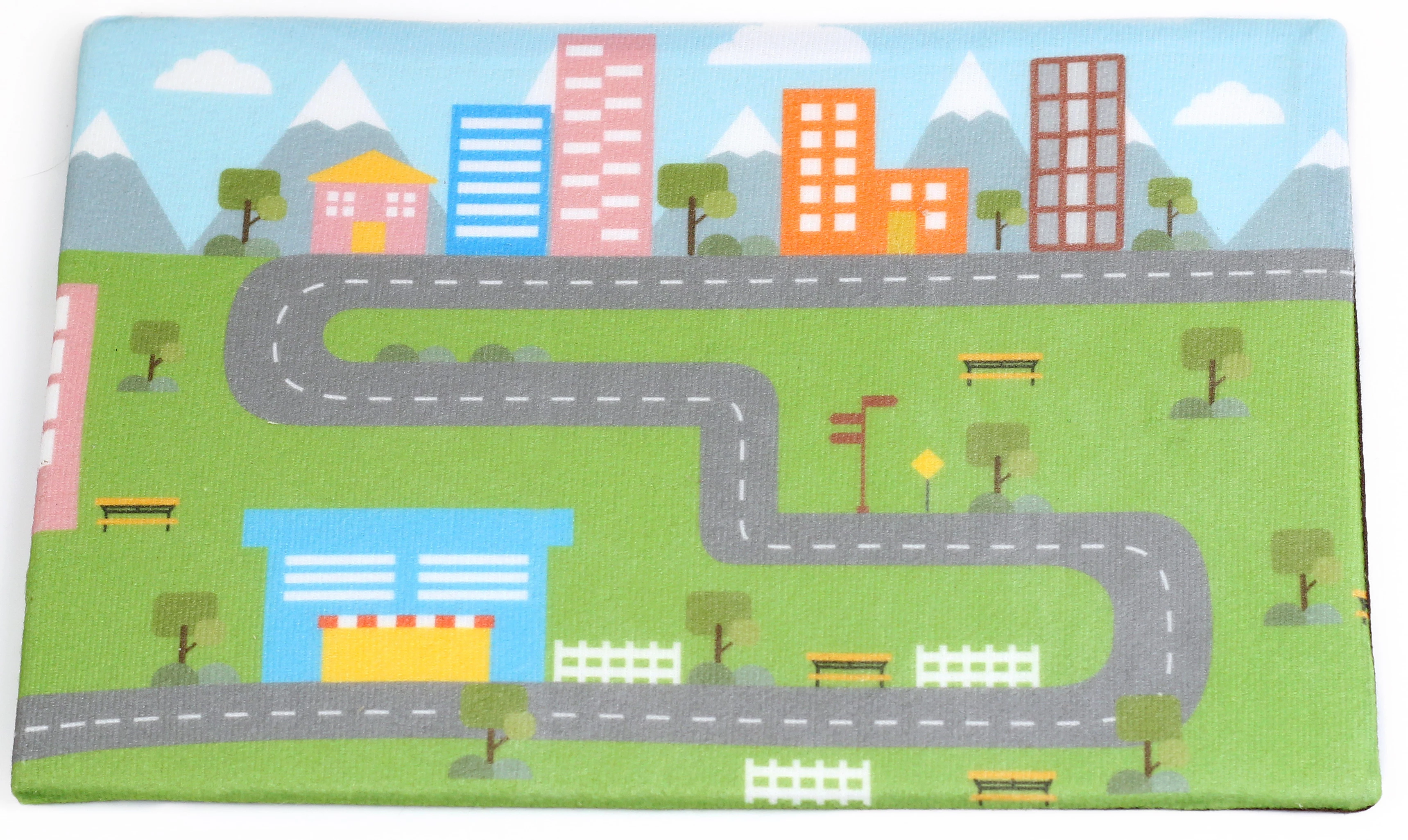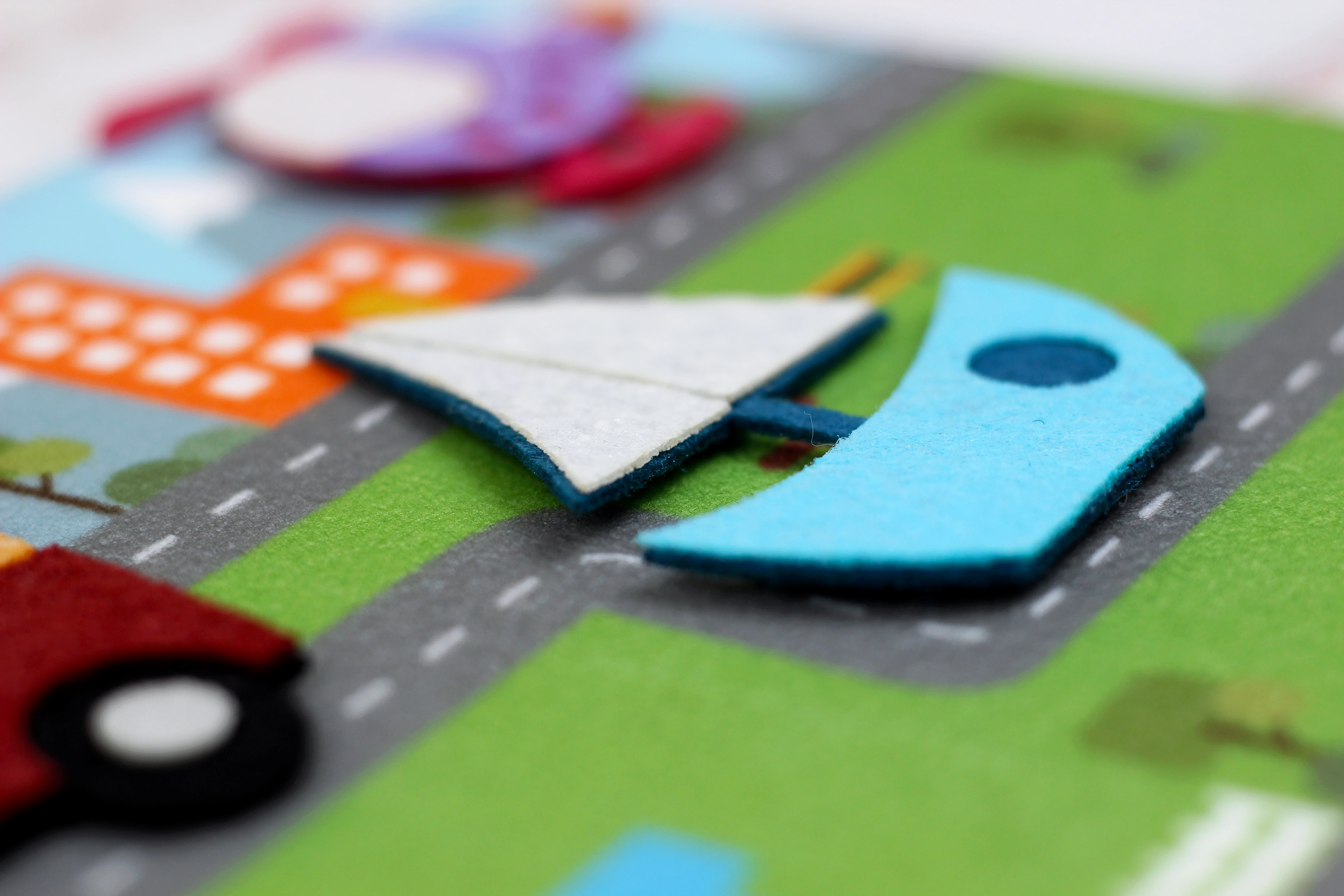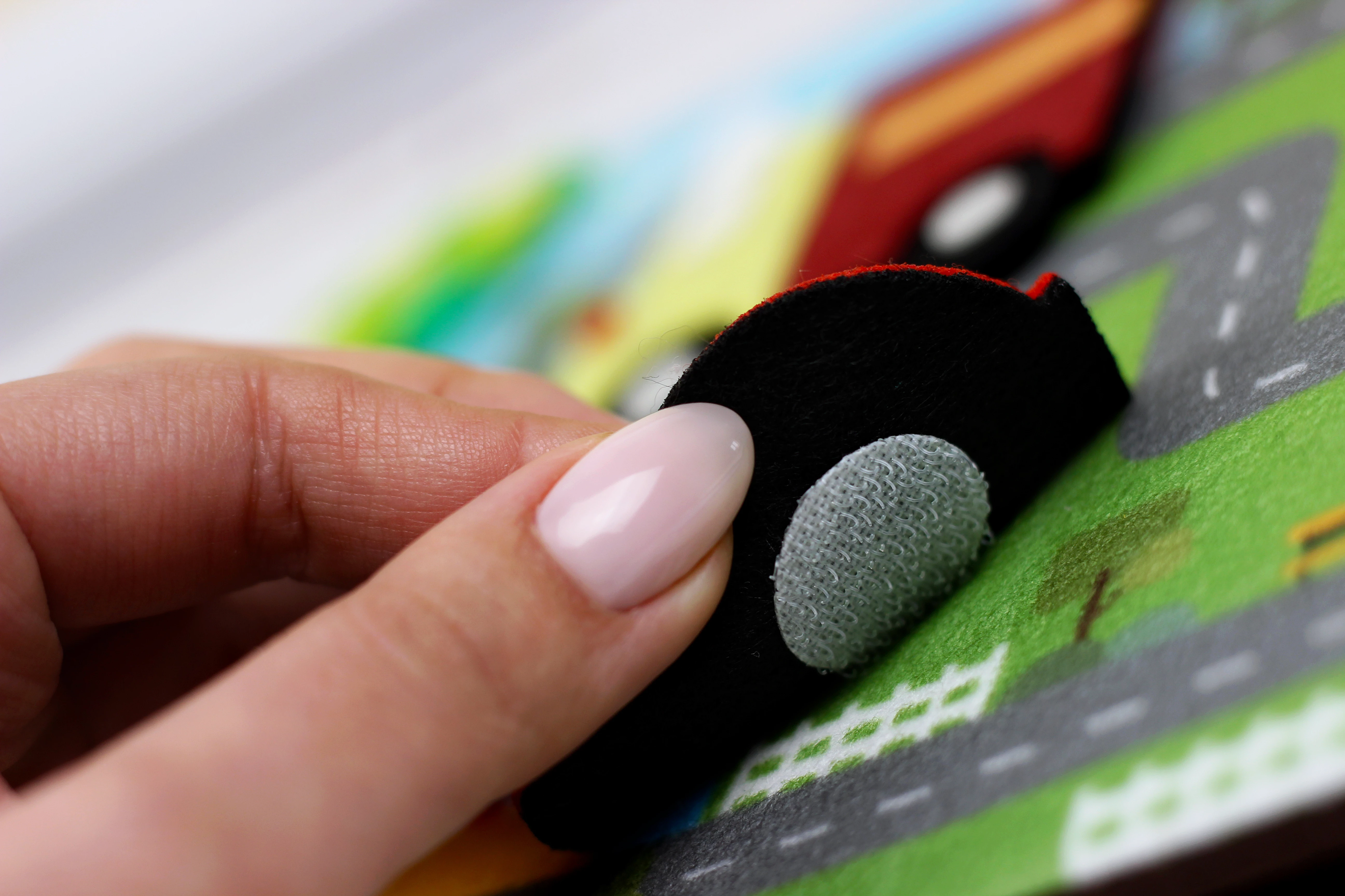 Дитяча уява не знає кордонів! Ваша дитина зможе придумати безліч історій з цим набором. Набір складається з килимка у вигляді карти міста і різних видів транспорту (вертоліт, літак, машина, вантажівка, корабель, підводний човен) на липучці. Дитина може переміщати машинки, міняти їх місцями, придумуючи цікавий сюжет.