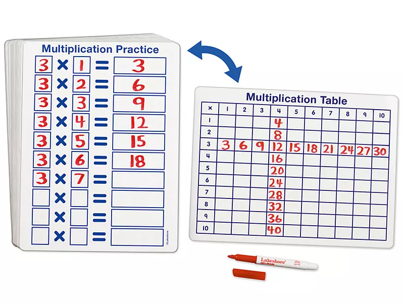 Навчальний набір призначений для вивчення операцій множення, він вдає із себе багаторазові картки, на яких можна писати відповіді спеціальним фломастером. За допомогою такого комплекту дитина зможе розібратися в множенні, швидко запам'ятає принцип визначення правильних відповідей. Картки ідеально підходять для закріплення і перевірки отриманих знань, як на груповому, так і на індивідуальному занятті.