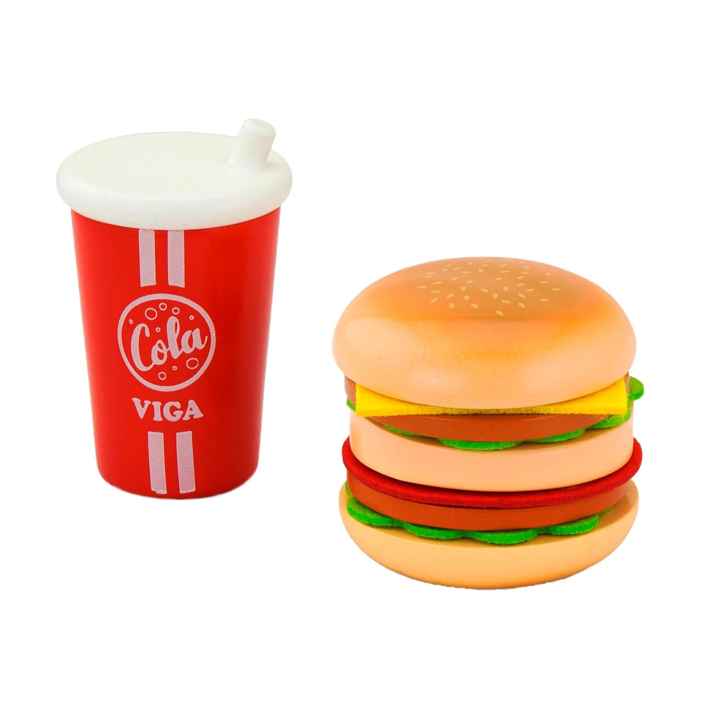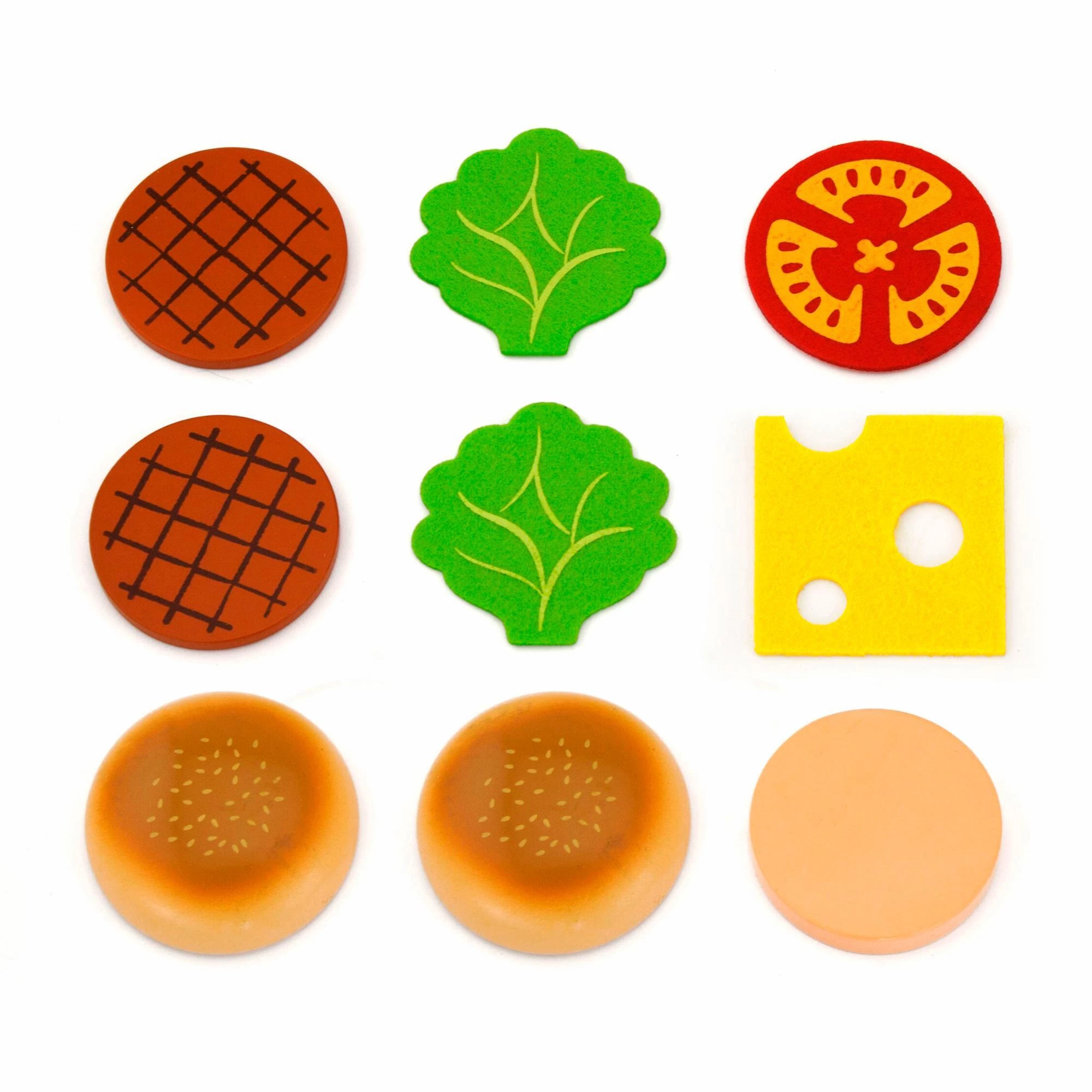 Набір складається з високоякісних дерев'яних елементів: стакан для напою і елементи для приготування гамбургера.