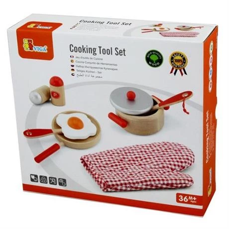Дитячий кухонний набір сподобається всім юним Кухарам. У наборі вони знайдуть каструлю з кришкою, сковорідку з яйцем, кухонну лопатку, ополоник, прихватку і дві баночки для спецій. Іграшка з високоякісної деревини.