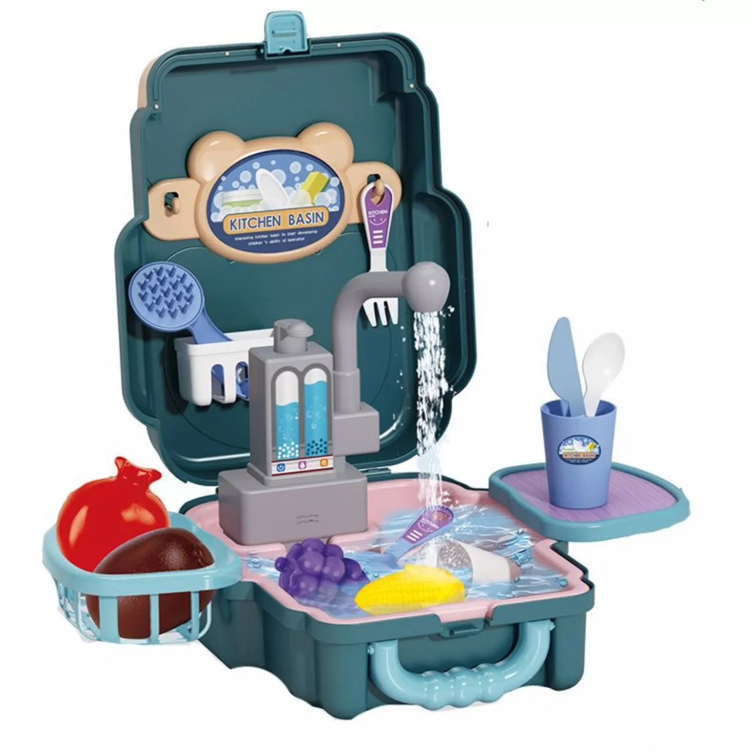 Даний ігровий набір порадує діток своїми ігровими можливостями, адже тут все по-справжньому! У спеціальний резервуар заливається вода, яка потім подається до крану. Мийка знаходиться в ергономічному пластиковому кейсі і не займає багато місця. У цій валізі можна зберігати й інші ігрові приладдя, що входять до набору. Дитина з величезним задоволенням буде плескатися і мити в мийці іграшковий посуд і продукти, які йдуть в комплекті. Іграшкова мийка надовго стане улюбленою іграшкою вашого малюка.