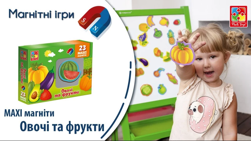 Відео Розвиваючий набір магнітів Овочі та фрукти