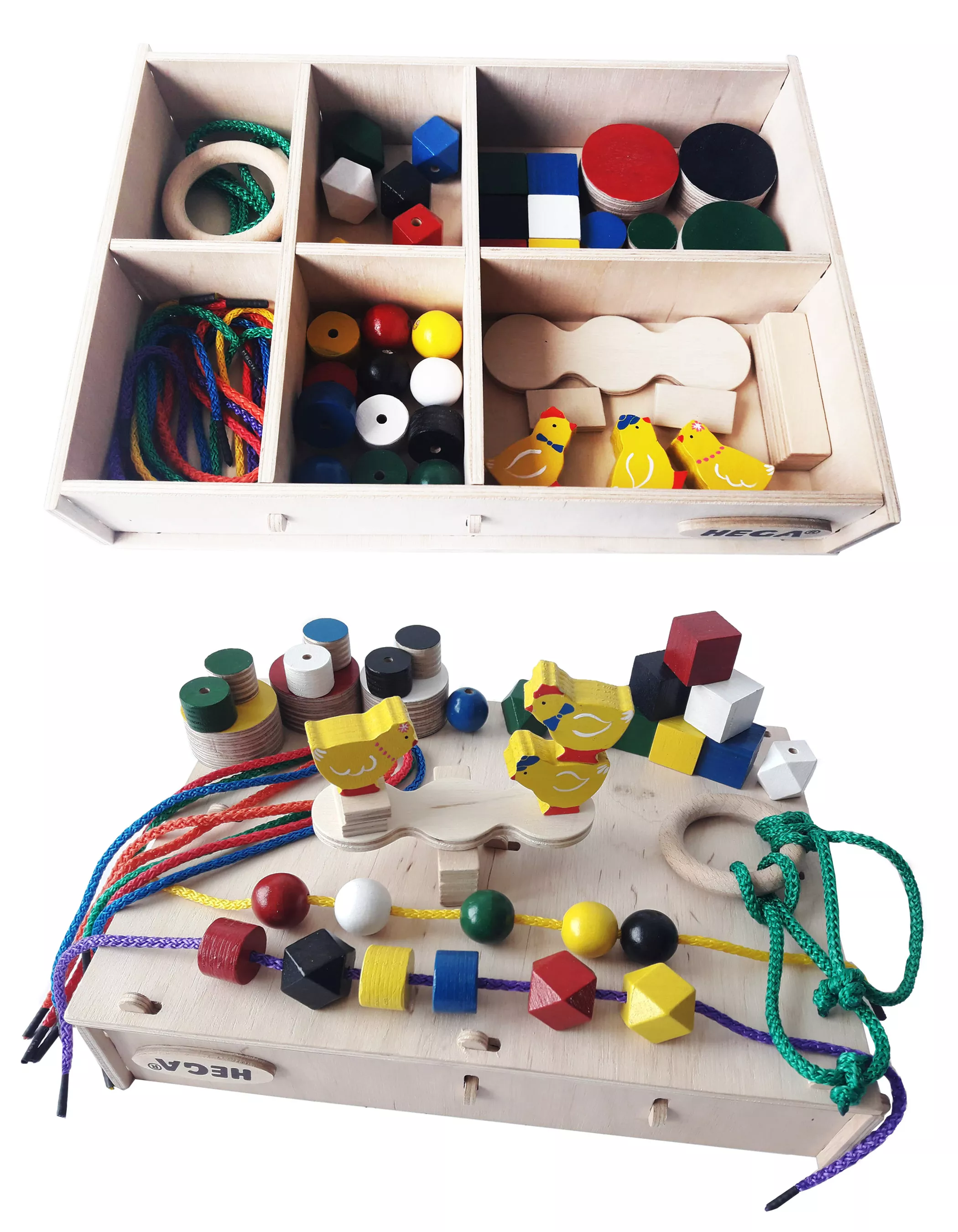 Цей навчальний набір містить комплекс вправ за методикою Монтессорі, спрямованих на розвиток дрібної моторики. Набір також рекомендується для гіперактивних дітей, а також для шанувальників головоломок та дрібних іграшок. У комплект входить збірка, що включає 33 завдання, що відповідають методиці раннього розвитку. Усі завдання поділені на прості та складні.