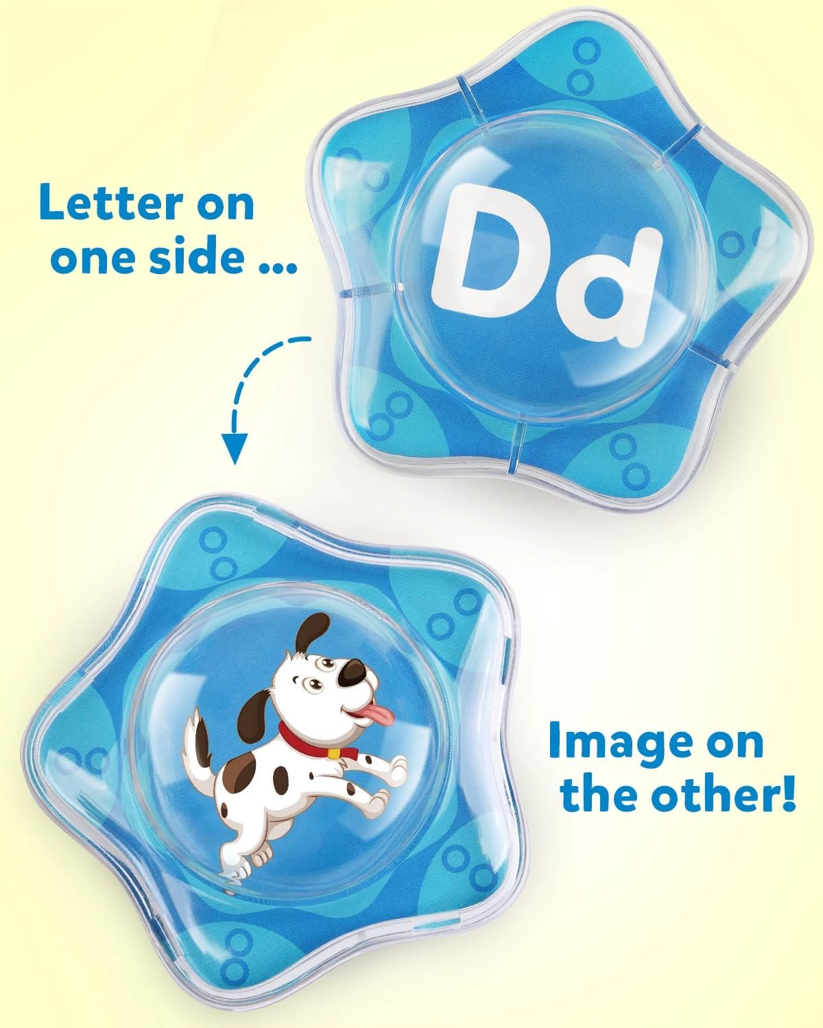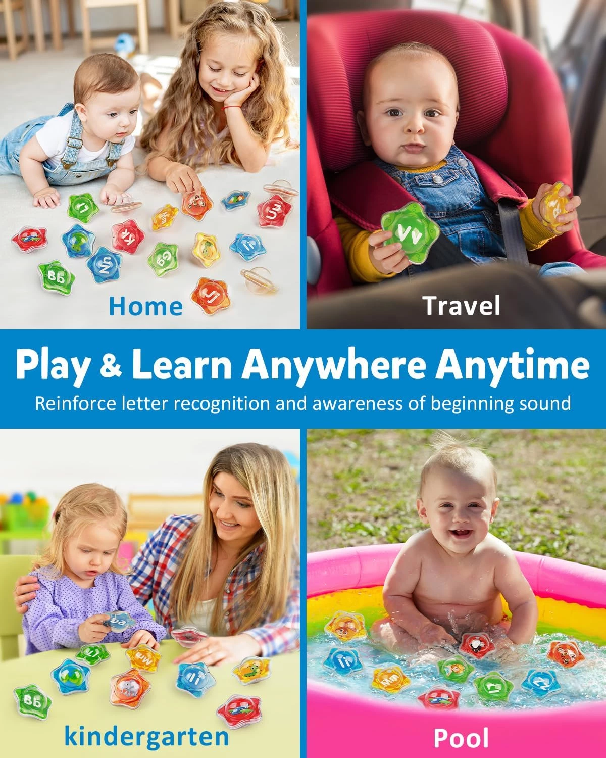 Вивчайте англійську абетку під час купання з цим яскравим набором іграшок для ванни. Гра з пропонованими іграшками допоможе малюкам у розвитку дрібної моторики та вивченні англійських літер. Усередині цих водонепроникних виробів надруковано барвисті літери від A до Z та картинки. Ідеальний вибір для розваг та навчання під час купання.