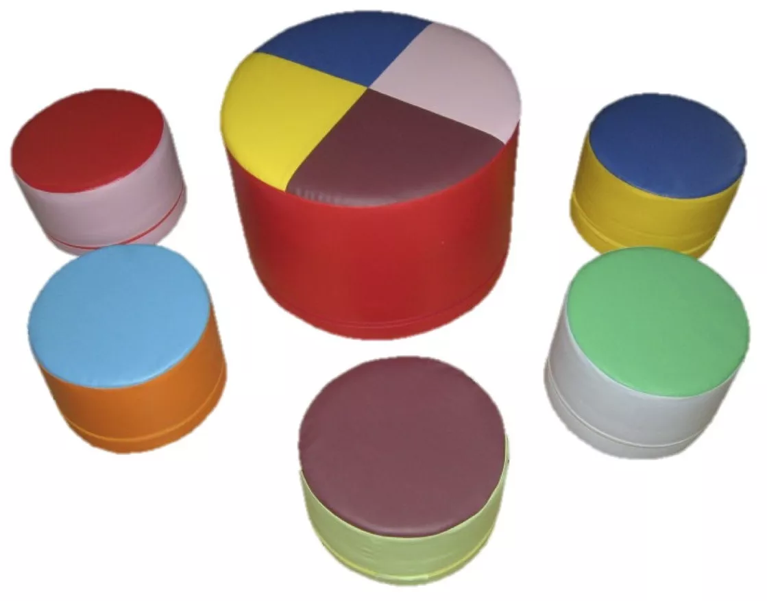 Діти будуть із задоволенням читати, слухати музику, відпочивати на даних пуфиках. У набір входить 6 пуфів різних кольорів, які гармонійно виглядатимуть в будинках, дитячих кімнатах і садах, спортивних секціях і школах. Усередині вироби набиті пінополіуретаном, поверх обтягнуті чохлом. Для створення пуфів використовувалися виключно високоякісні матеріали, тому товар довгий час зберігає презентабельний зовнішній вигляд і служить багато років.