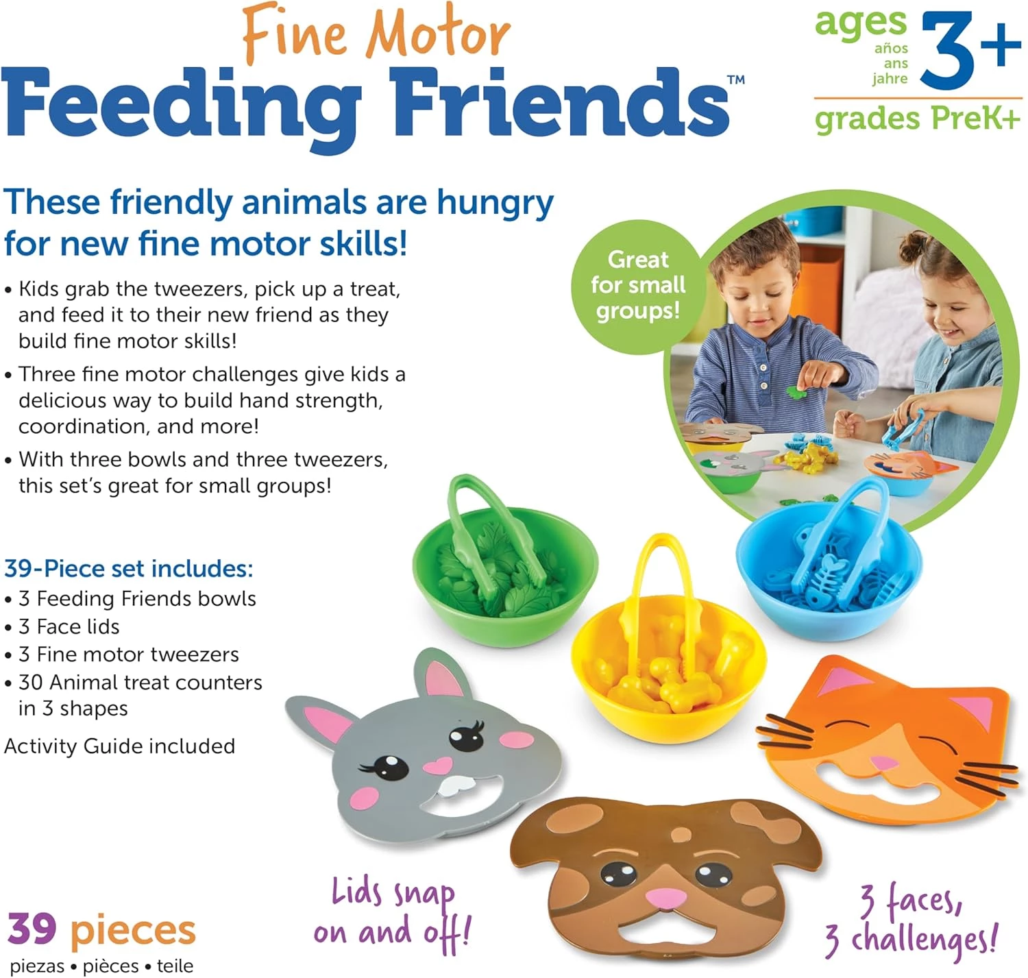 Познайомтеся з доброзичливими тваринами, які допомагають розвивати дрібну моторику! Розвивати її тепер також просто, як один, два, три: бери пінцет, бери ласощі та годуй свого друга.