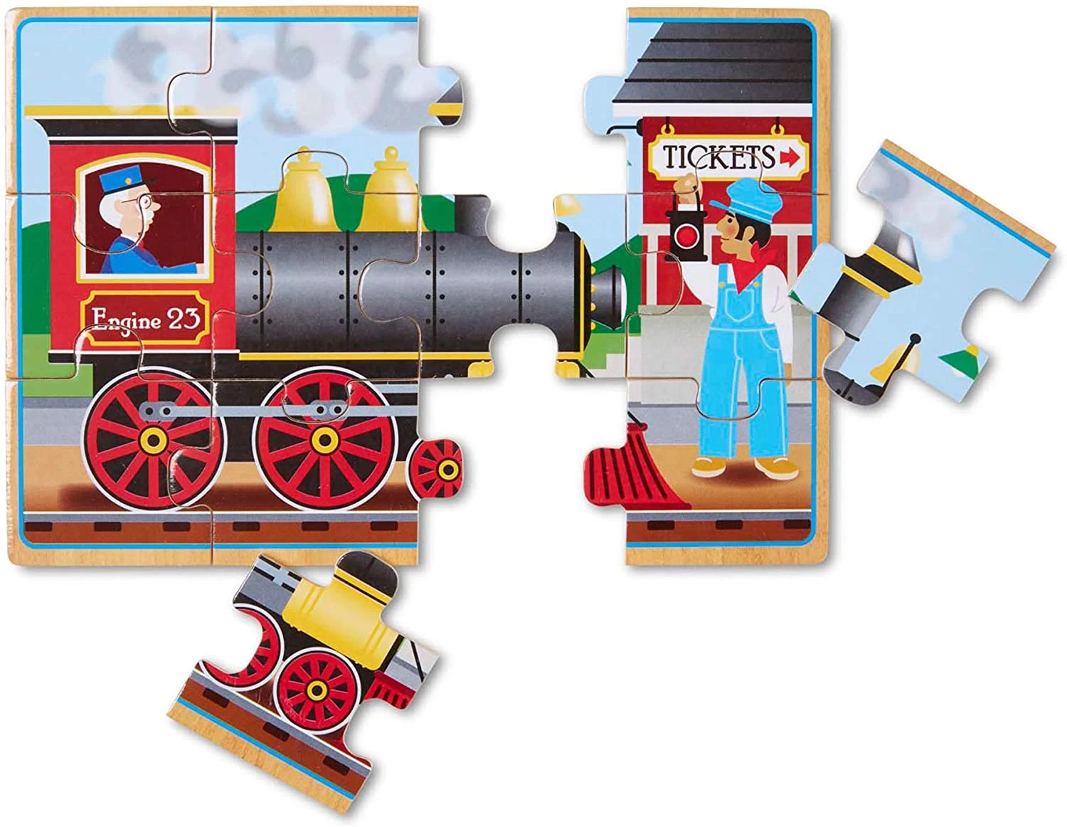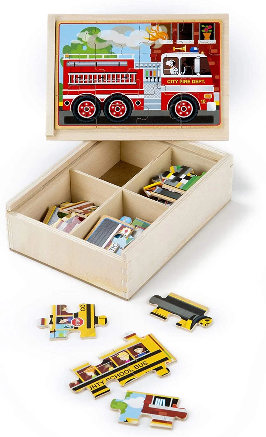 Даний набір ідеально підходить для розвитку дрібної моторики і логічного мислення. Тут необхідно зібрати чотири картинки з різним транспортом (пожежна машина, шкільний автобус, гоночний автомобіль і паровоз). Дитина зможе дізнатися нові види і навчиться розрізняти їх. Кожен пазл складається з 12 великих елементів, вони виконані з дерева, що відрізняється довговічністю і міцністю. Це чудовий подарунок на будь-яке свято.