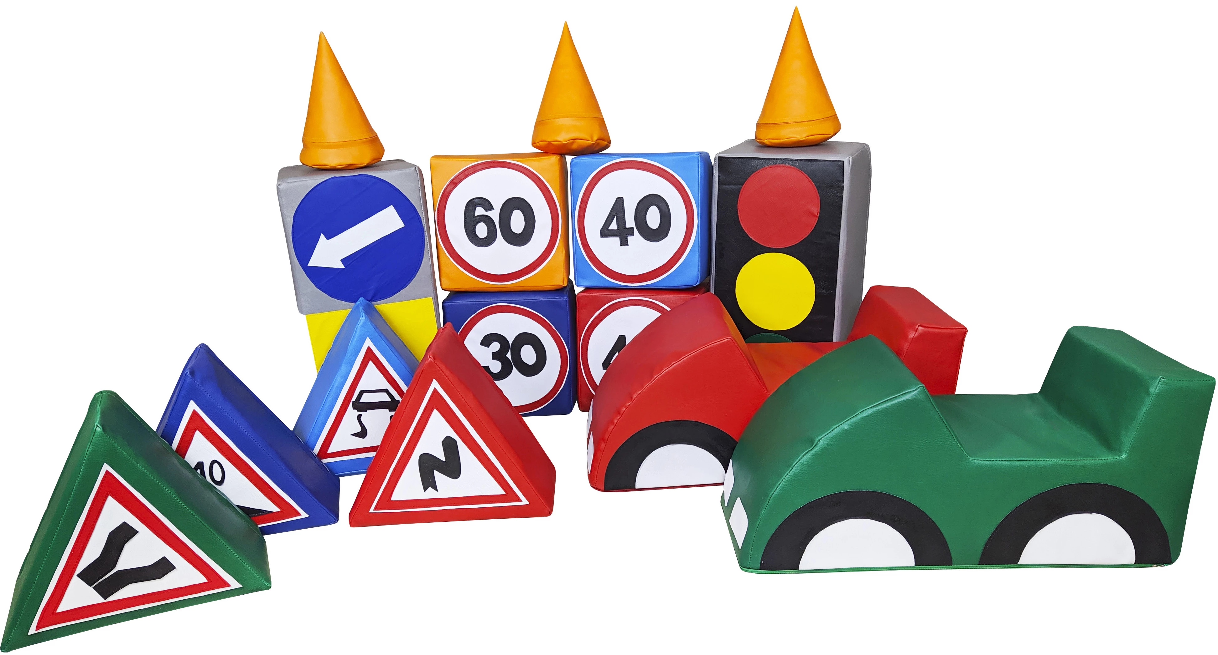 Приємний на дотик, яскравий і різнобарвний набір допоможе малюку навчитися елементарним правилам поведінки на вулиці. З елементів набору можна моделювати ситуації, що виникають на дорозі і вчити дитину правильно з них виходити. Набір призначений для дитячих кімнат, розважальних дитячих установ, центрів раннього розвитку і дитячих садів. Завдяки якісним матеріалам набір простий у догляді і легко очищається.