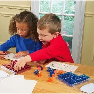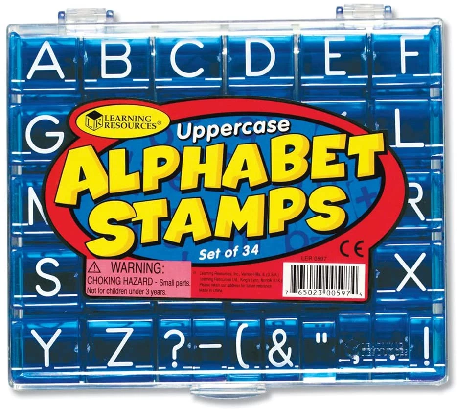 Даний набір штампиков призначений для вивчення англійського алфавіту. Всього в комплекті 26 букв і вісім розділових знаків. Діти зможуть складати слова і невеликі речення. Відбитки виходять чіткі і красиві, такий незвичайний підхід мотивує займатися вивченням мови. Штампи невеликі, мають зручну форму для дитячих ручок. Це прекрасний набір для використання вдома або в розвиваючих групах. Він представлений в компактному пластиковому футлярі.