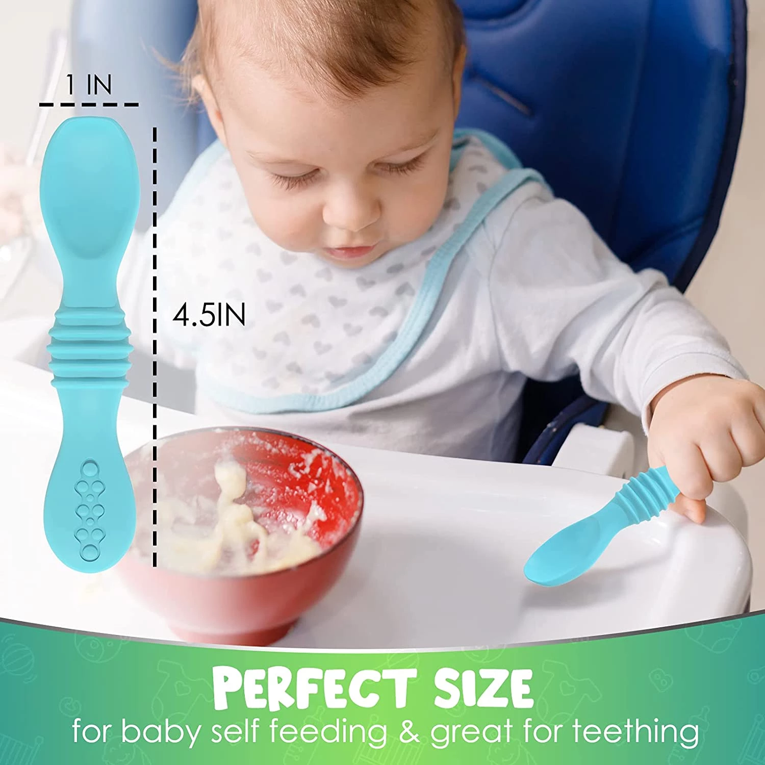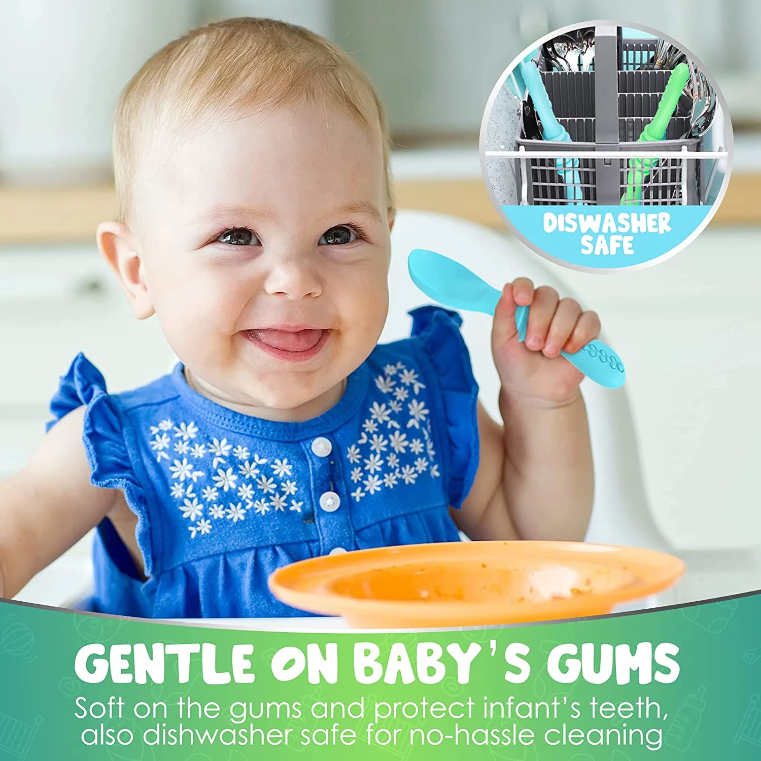 Немовлята люблять використовувати м'які інструменти як іграшки для прорізування зубів. М'яка силіконова дитяча ложка відмінно підходить як прорізувач для зубів, а також як іграшка для вашого малюка, ці ложки м'які, мають зручні борозенки і захищають дитячі зуби.