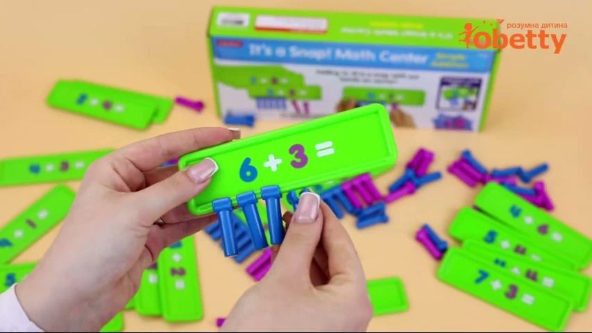 Освоювати додавання з цим набором просто і захоплююче. Діти вибирають табличку з прикладом, і прикріплюють відповідну кількість паличок, відповідно до кольору, потім підраховують всі палички, щоб вирішити приклад.