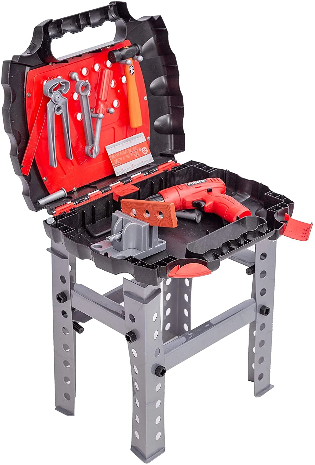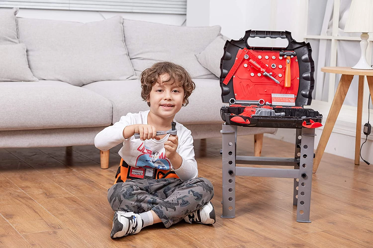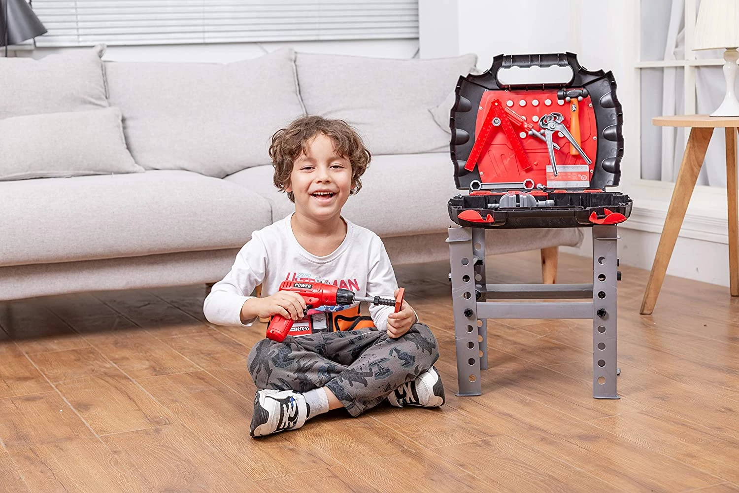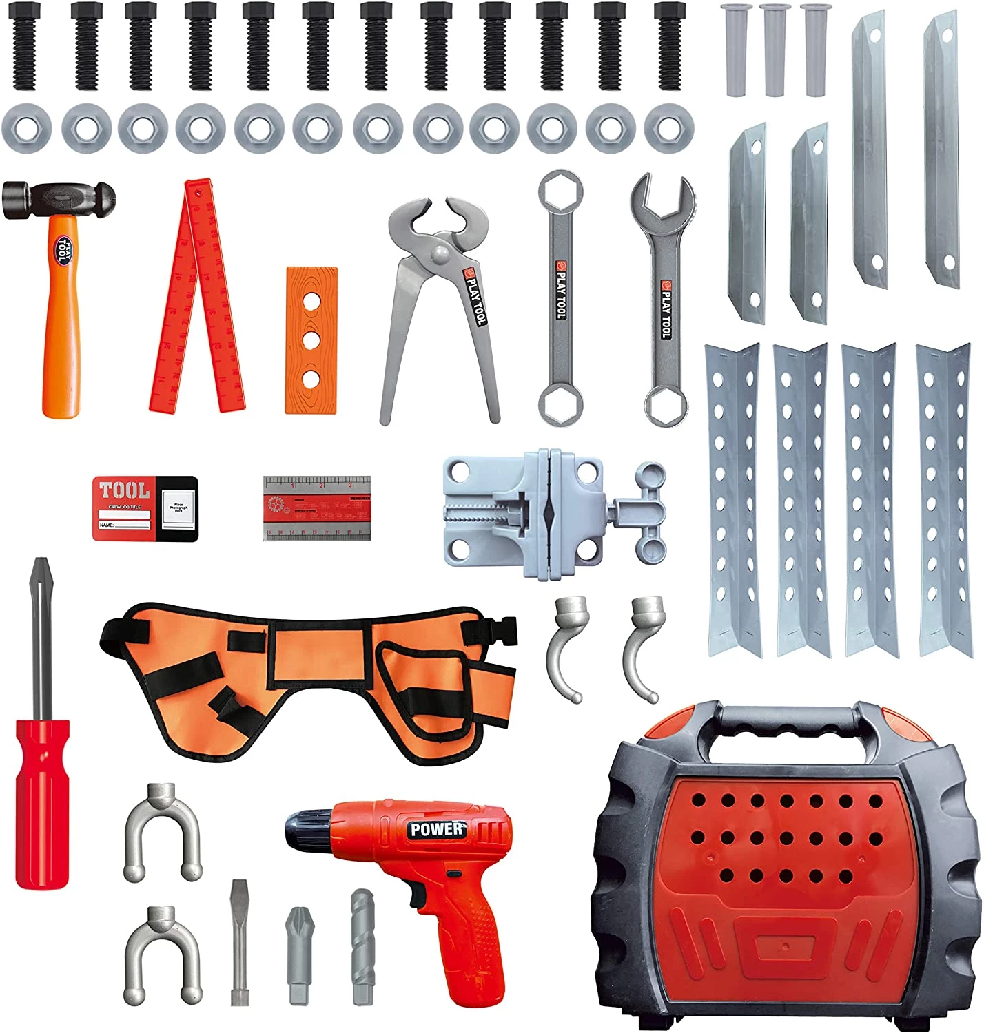 Прекрасний набір, який включає в себе все, що потрібно для захоплюючої гри в будівельника. Велика кількість різних інструментів привернуть увагу дитини, широкий вибір гайок і гвинтів всіх розмірів, молоток, викрутки, пилку і функціональну електронну дриль і багато іншого ! Також є спеціальний робочої ремінь, для більшої реалістичності гри, на якому можна написати своє ім'я. Всі 55 будівельних предметів легко поміщаються в зручну валізу. Цей набір можна брати з собою на вулицю або грати вдома. Добре розвиває і займає будь-якого хлопчиська.