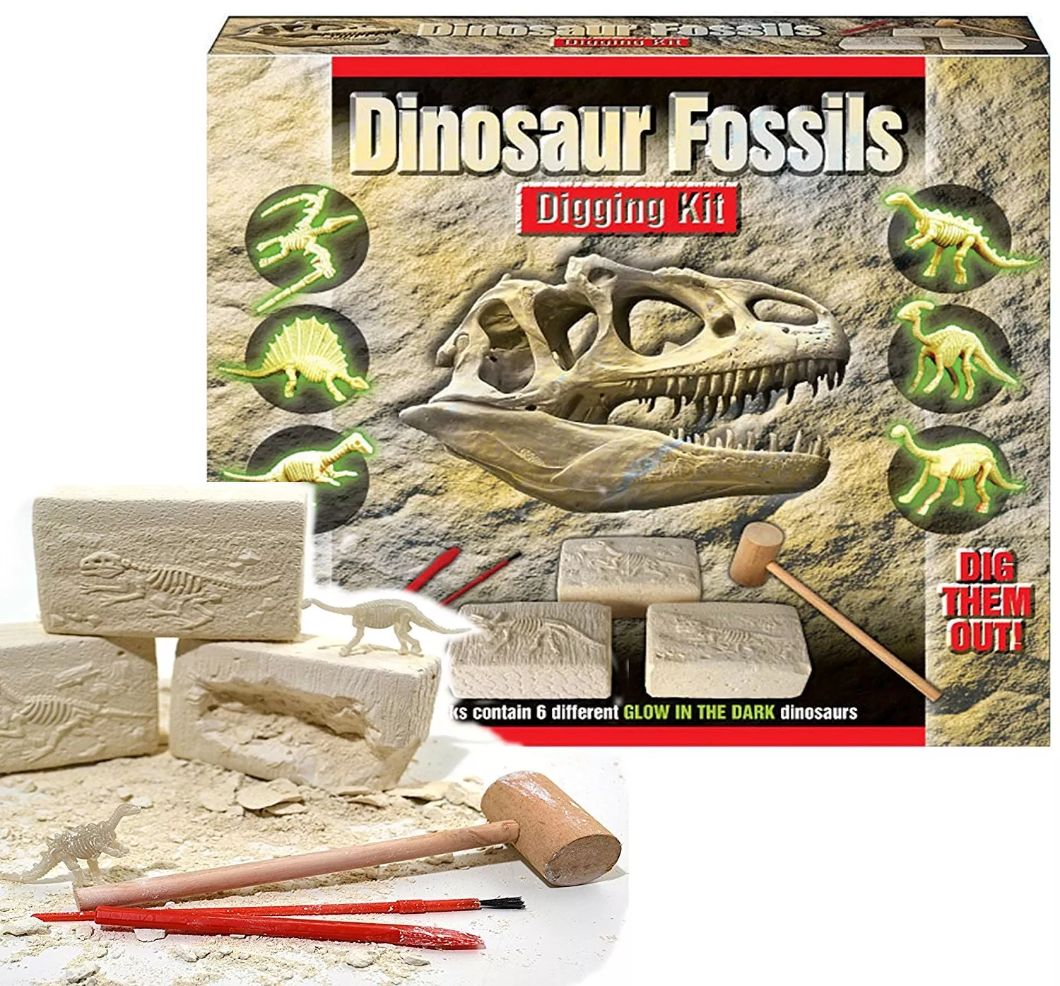 KandyToys Dinosaur Fossils Digging Excavation Kit Dig Your Own Skeleton Glow In The Dark