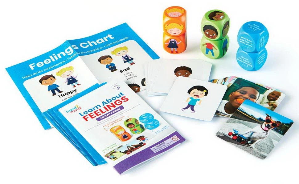Навчитися керувати почуттями та позитивно реагувати на стресові ситуації, а також ладити з іншими людьми є життєво важливою частиною розвитку дитинства. Як тільки вони усвідомлюють свої почуття, вони також усвідомлюють почуття інших і взаємодіють зі своїми однолітками зі співчуттям і повагою. Цей набір призначений для емоційного розвитку дітей. Він вчить усвідомлювати власні почуття, щоб краще розуміти інших, тим самим покращують Емпатичні здатності. У комплекті є кубики з героями і питаннями, таблиці емоцій, плакат і картки, все це допомагає краще зрозуміти в ігровій формі ту чи іншу емоційний стан. Набір може використовуватися як вдома, так і в розвиваючих групах і класах. Це відмінний терапевтичний інструмент для розпізнавання власних почуттів.