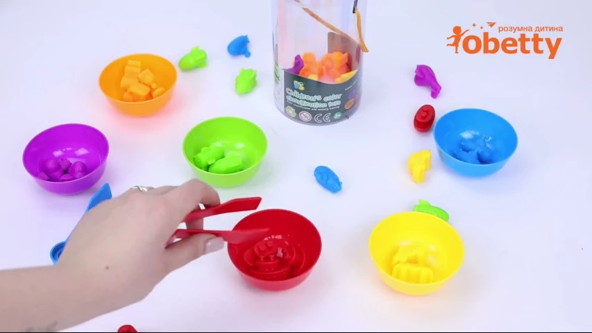 Набір для сортування кольорів є чудовим тренажером для розвитку зв'язку між розумом і рукою. Використання великого пінцета перетворює сортування на веселу гру, що допомагає краще тренувати координацію рук і очей. Відмінний інструмент для вивчення класифікації кольорів, лічби, зіставлення та вдосконалення дрібної моторики.