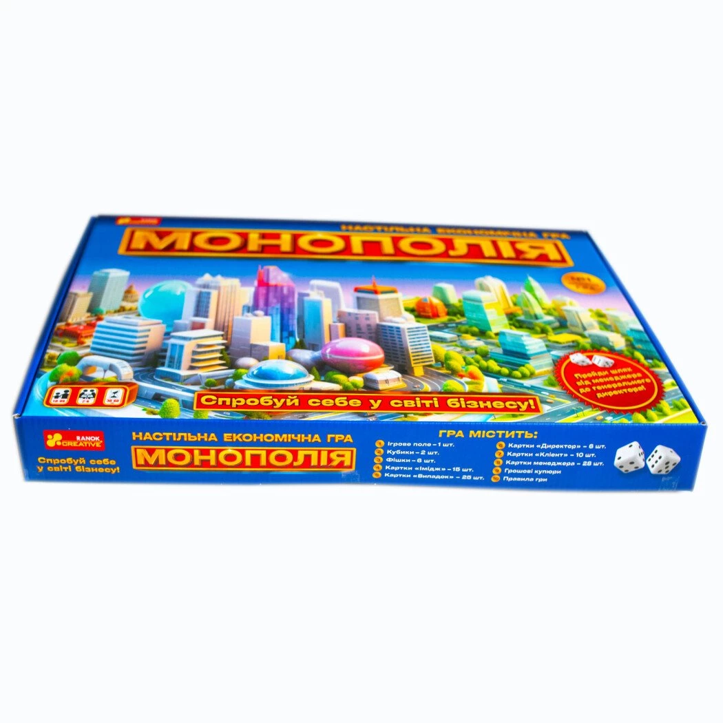 Зустрічайте найпопулярнішу настільну гру в оновленому дизайні! Бути власником великих корпорацій нелегко. Гра «Монополія» дарує можливість спробувати себе у ролі бізнесмена та пройти шлях від простого управлінця до генерального директора великої компанії. У процесі гри ви дізнаєтеся, як нелегко приймати правильні рішення, яку роль у великому бізнесі грає правильно обрана стратегія або чіткий бізнес-план. Укладайте договори, продавайте продукцію, торгуйте акціями підприємств, прислухайтеся до порад солідних експертів та досягайте вершин великого бізнесу.