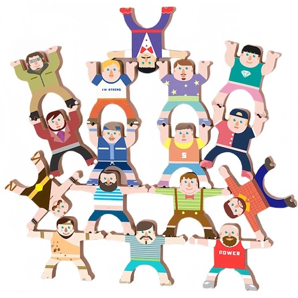 Мета цієї гри — побудувати піраміду, використовуючи 16 фігурок, виконаних у вигляді різнокольорових акробатів. Варіантів усіляких схем безліч! Ця гра є відмінним тренажером для уважності, акуратності, посидючості, а також точності рухів. Така гра буде корисна діткам віком від двох років, хоча, напевно, спробувати виконати веселі завдання матимуть бажання і дорослі.