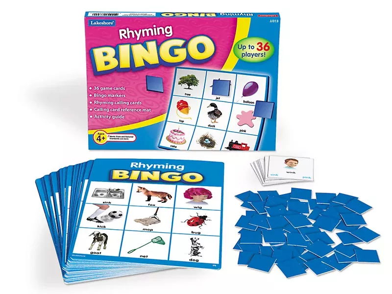 Вашій дитині подобається римувати слова? У такому разі, настільна гра Бінго Рими від компанії Lakeshore буде для нього чудовим подарунком. Гра дарує можливість досліджувати звуки, що римуються. Вона має такі самі правила, як і класична гра Бінго. Різниця полягає лише в тому, що коли ви називаєте слово, діти повинні знайти до нього риму, скориставшись ілюстрованими ігровими картками.
