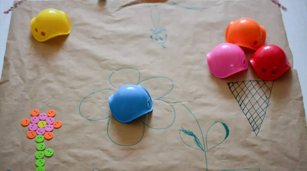 Попросіть дитину скласти кульку з двох міні-Білібіо, наповнивши його фішками.