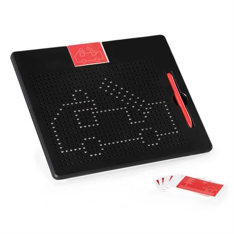 З цієї магнітної мозаїкою діти можуть створювати картинки на планшеті за допомогою магнітної ручки: геометричні фігури, тварин, букв, транспортні засоби. Магнітний наконечник планшетної ручки притягує металева кулька до невеликих отворів на поверхні планшета, видаючи характерний звук.