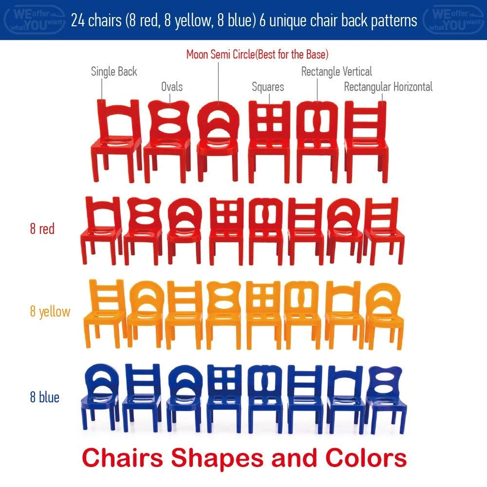 Індивідуальна гра - одна вежа. Переможець - хто останній закріпить стілець на самому верху сходів.