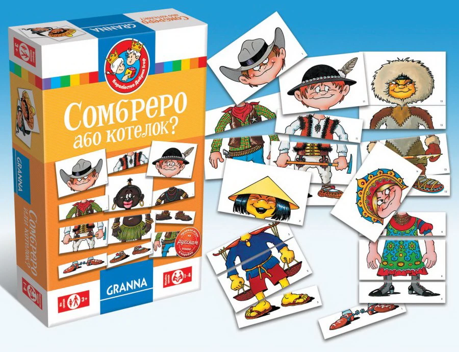 1 варіант гри. Підготовка до гри. Розкладіть всі карти в 4 стопки відповідно з маркуванням (1 точка, 2 точки, 3 точки, 4 точки) зображенням вниз. Гру починає самий молодший учасник, далі хід переходить за годинниковою стрілкою. Гравці кидають кубик і відкривають карти відповідно до випавшого числа. Якщо випало 5, то гравцеві необхідно кинути кубик вдруге, якщо двічі випало 5, то учасник нічого не отримує. Якщо на кубику випало 6, то гравець отримує по одній карті з усіх стопок і ще дві карти з стопки 1-4 на вибір. Якщо випало 4 і при відкритті карти з'ясовується, що на ній зображено "Сомбреро" або "Казанок", то гравець може отримати ще одну, будь-яку карту. Якщо всі карти під потрібним числом закінчилися, то гравець нічого не отримує. Коли закінчуються всі колоди, гравці перевертають свої карти і створюють з них персонажів. Спробуйте створити якомога більш забавних людей! Перемагає той гравець, який зміг зібрати більше всіх персонажів АБО той, хто зміг зібрати більше всіх правильних персонажів.