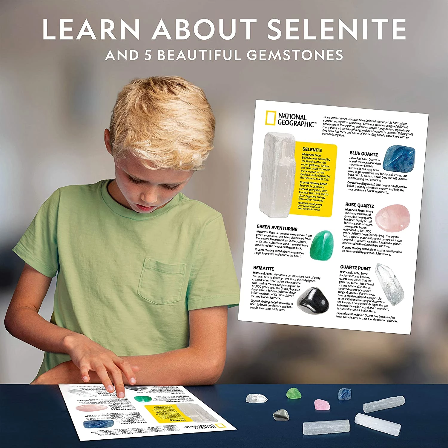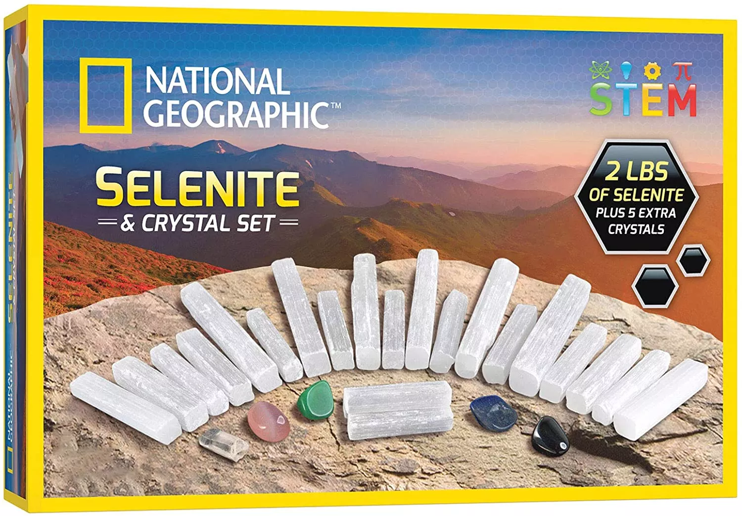 NATIONAL GEOGRAPHIC Selenite Crystal Set - 2 lbs of Bulk Selenite Wands & 5 Premium Crystal