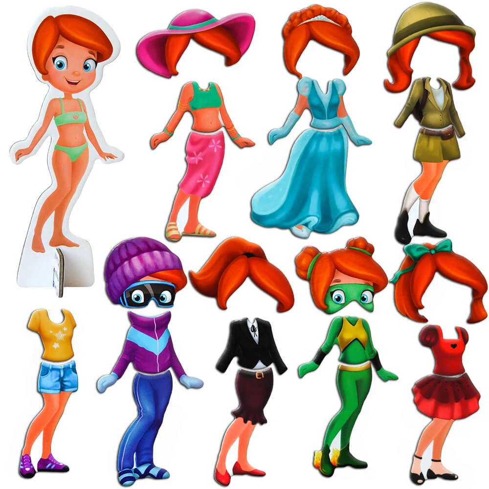 Магнітна гра «Новий образ» – це весело та цікаво. Спробуй себе в ролі модельєра та стиліста, змінюючи зачіски та комбінуючи одяг. Як твоя лялька виглядатиме сьогодні? Що їй вдягнути? Можливо костюм супергероя, а може бальне плаття?