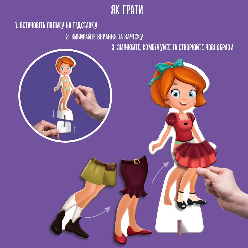 Візьміть гру з собою, вирушаючи на прогулянку, у гості чи дорогу. Якщо під рукою немає рівної поверхні, ляльку можна тримати в руці, а іншою рукою кріпити магнітний одяг.