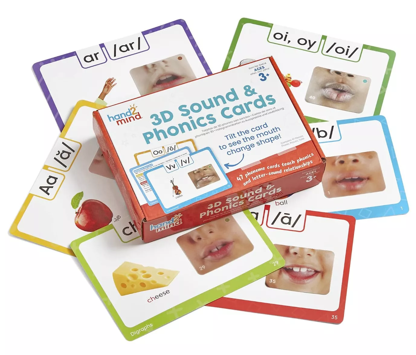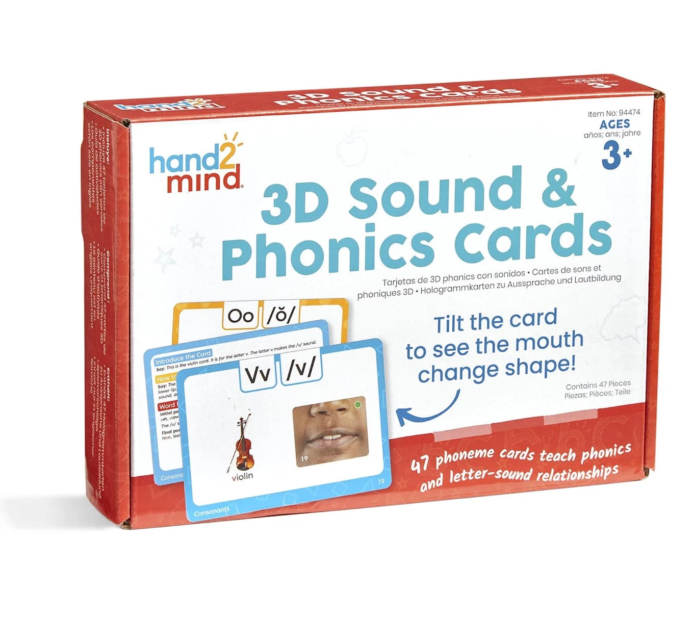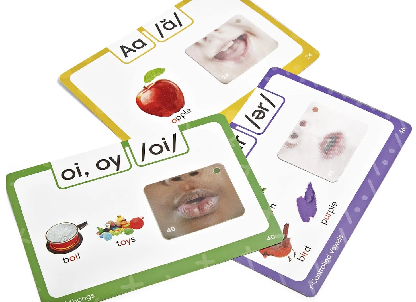 Представлений навчальний набір від компанії hand2mind є чудовим вибором для дітей, які вивчають англійську мову. Картки, якими укомплектовано набір, охоплюють 47 різних звуків і мають колірне кодування залежно від типу звуку. Кожна навчальна картка супроводжується інструкцією, у якій йдеться про те, як запровадити звук, як пояснити, як його вимовляти; також на картках наведено приклади слів, у яких використовується цей звук. Навчальні картки заповнюють прогалини щодо звуків і є дуже цінним інструментом для вчителів англійської мови та логопедів.