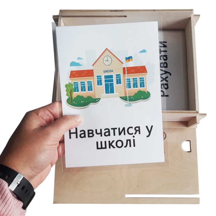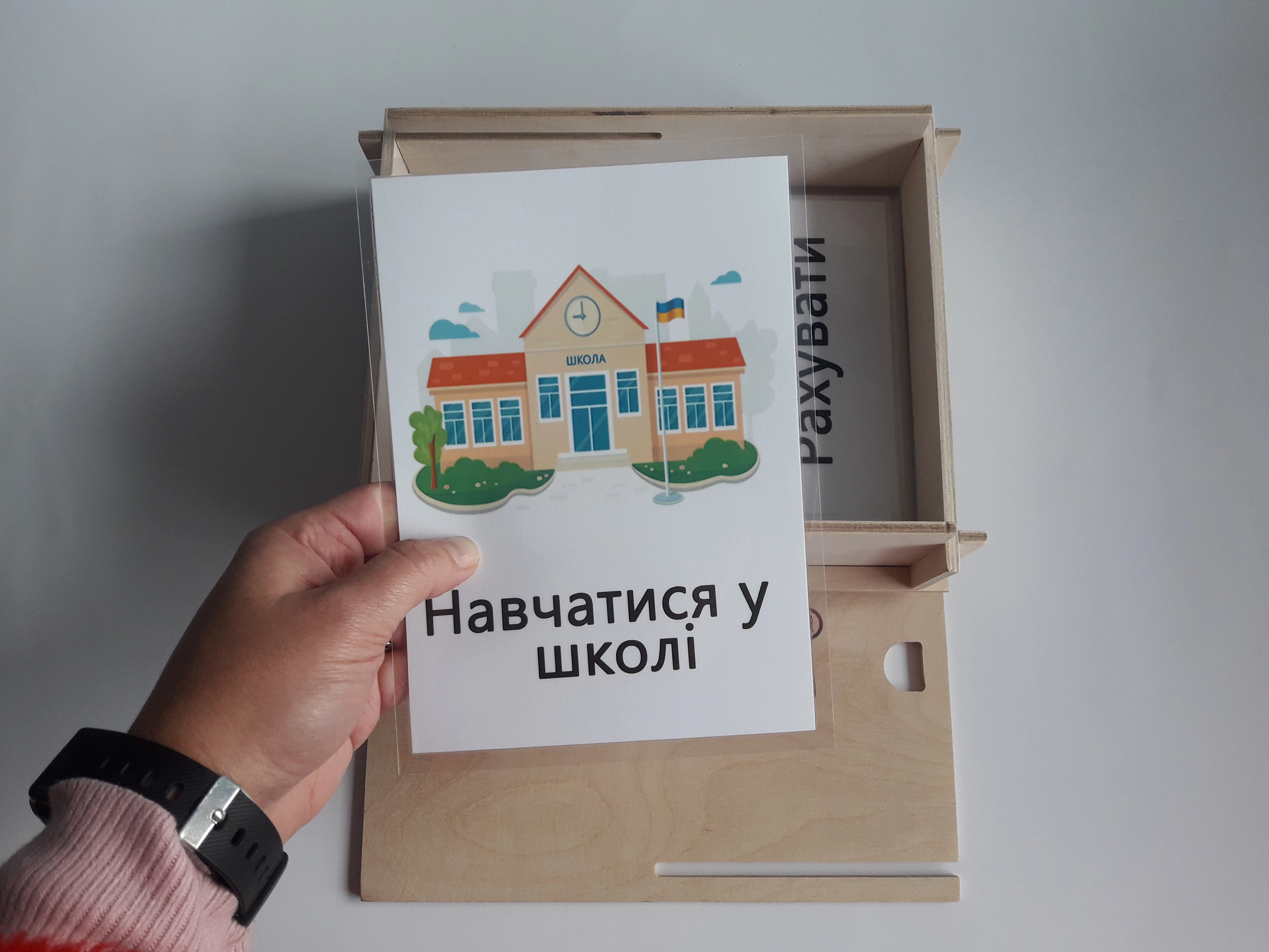 Поданий набір включає картки із зображеннями, що дозволяють дитині, яка відчуває труднощі у спілкуванні, висловлювати свої бажання і потреби. Набір розроблявся для демонстраційної роботи педагога. Навчальні картки мають збільшений розмір. Комплект можна використовувати вдома, в інклюзивних групах у дитячих садках та в інклюзивних класах початкової школи.