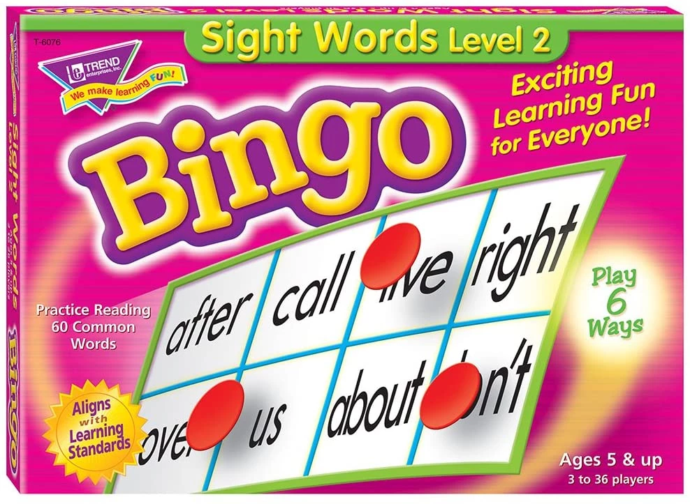 Sight Words Level 2 Bingo Game