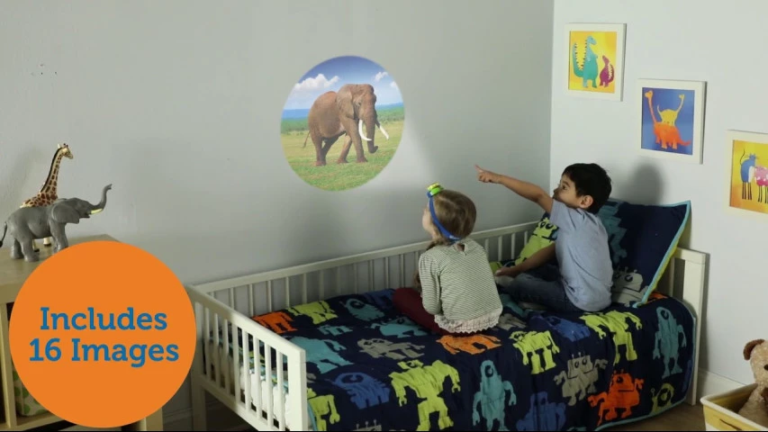 Проектор показує картинки із зображенням тварин, проектуючи їх на стіни та інші плоскі поверхні.