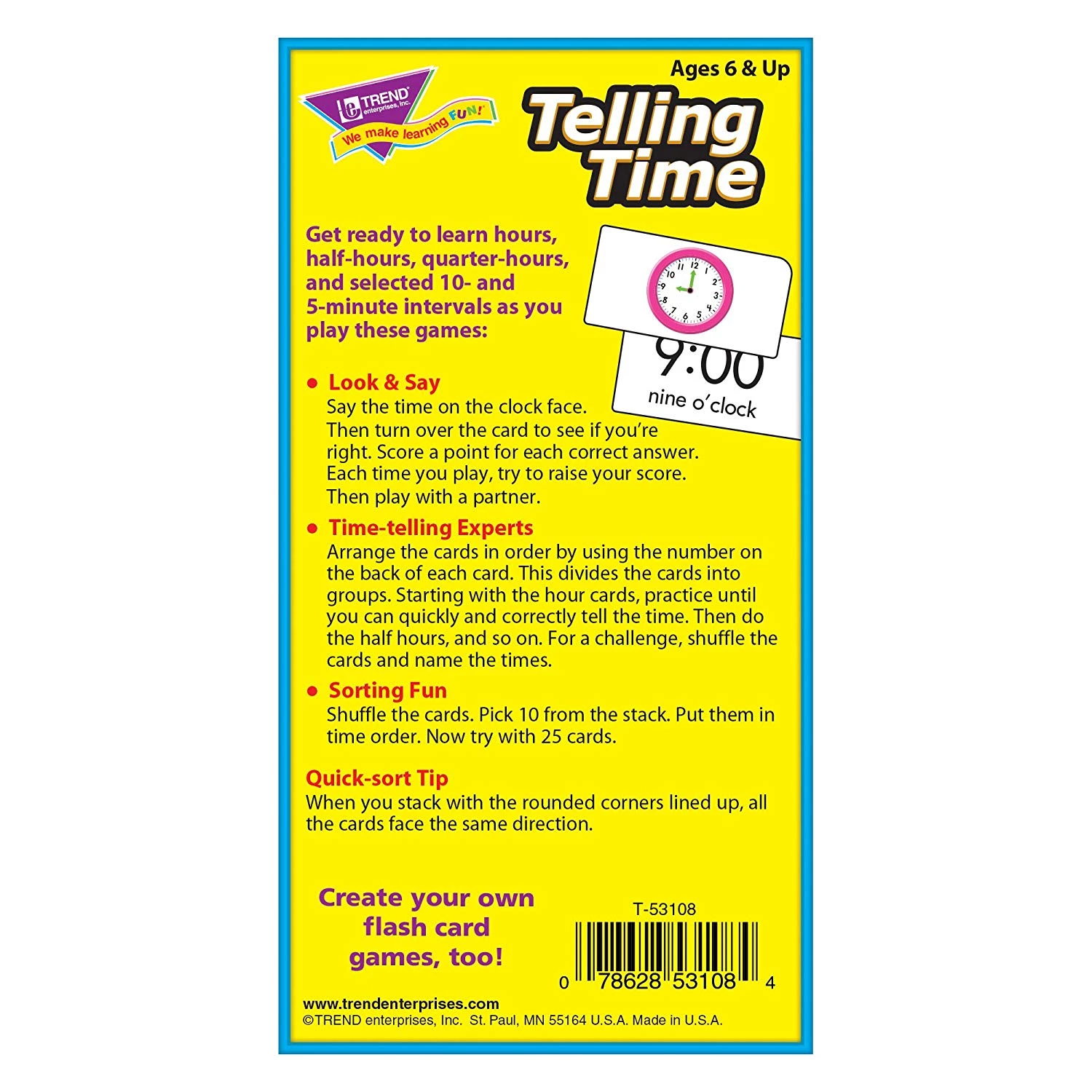 Поняття часу легко освоїти за допомогою цього набору флеш карт! У наборі 96 флеш-карт з цифровим і аналоговим часом до години, півгодини, чверті години і вибраними 5- і 10-хвилинними інтервалами. Завдання призначені для самостійного використання: діти просто вибирають картку з питанням, а потім використовують годинник для відповіді на завдання і самоконтролю!