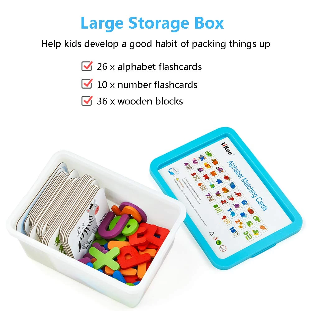 Вчитися граючи - це весело: ми всі знаємо, що навчання ефективніше, коли це весело! Дітям сподобається сортувати дерев'яні цифри і букви, і зіставляти їх з флеш картками! Це відмінний спосіб вивчити алфавіт і цифри. Він сприяє їх розпізнаванню кольору, координації рук.