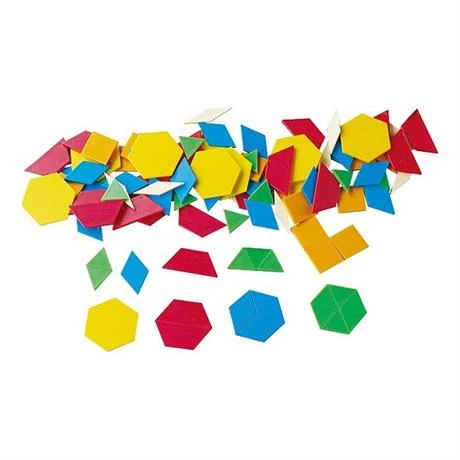 Розвиваючий набір мозаїки на сприйняття кольору, форми, величини. У наборі 105 елементів семи різних форм і кольорів та 5 карток з прикладами: 30 штук великих трикутників, 15 штук середніх трикутників , 30 шт маленьких трикутників, 17 штук квадратів, 15 штук параллелограмів.